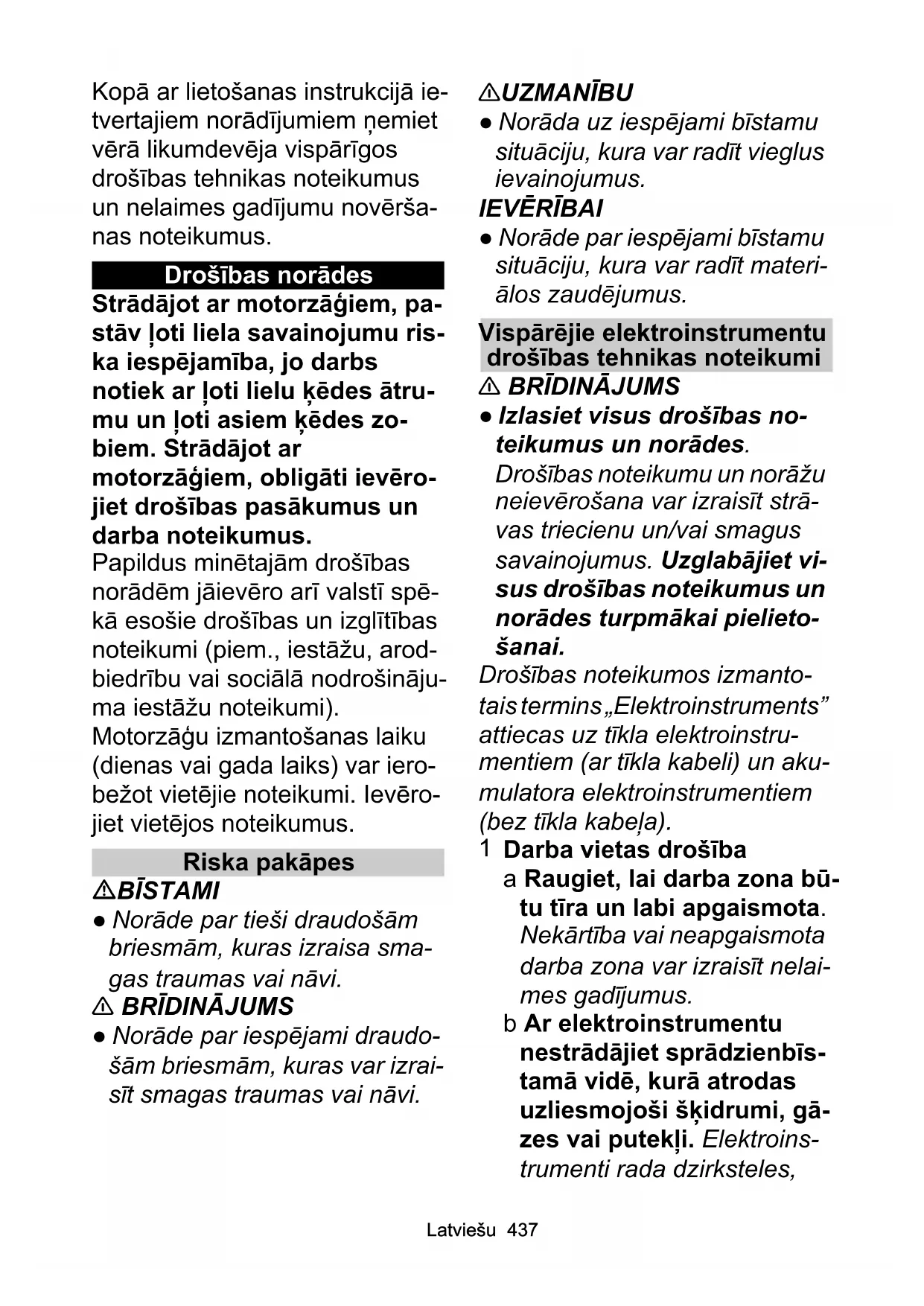 - Drošības norādes p. 437