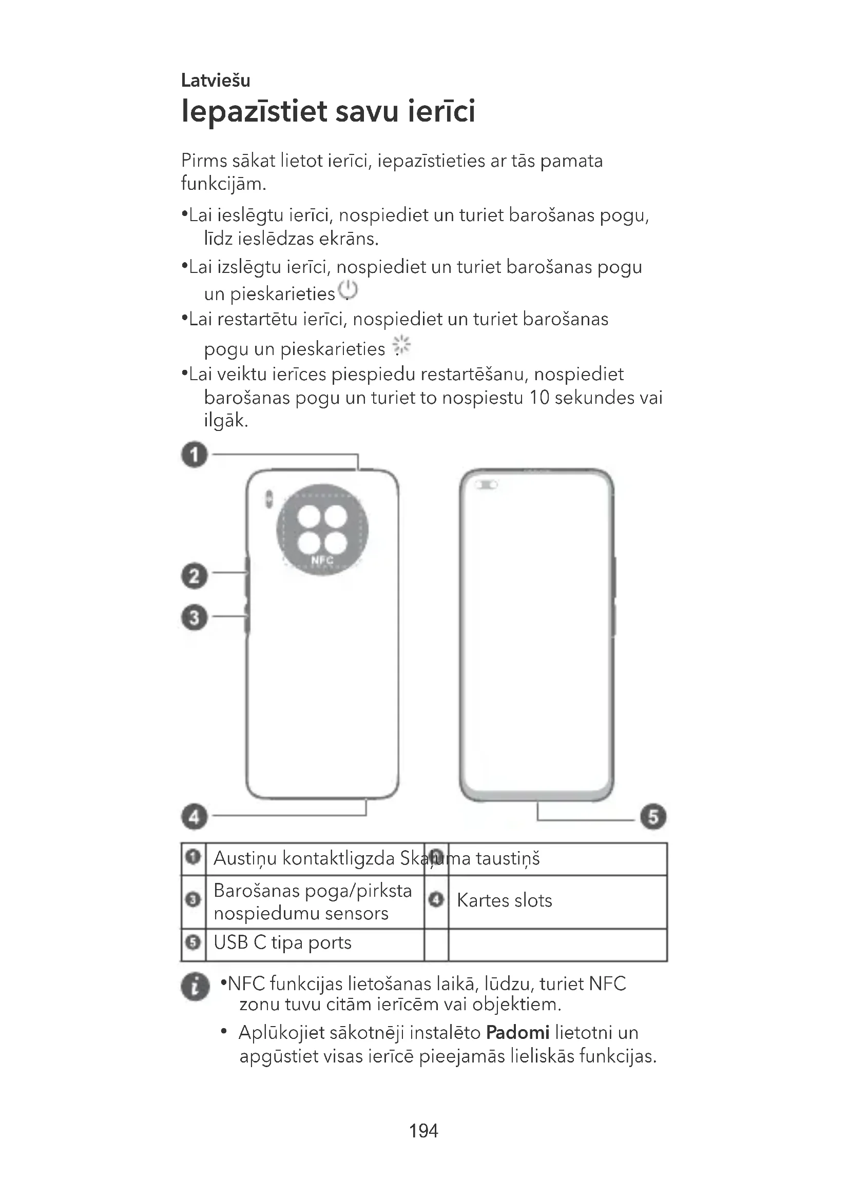 - NFC funkcijas lietošanas laikā, lūdzu, turiet NFC zonu tuvu citām ierīcēm vai objektiem.