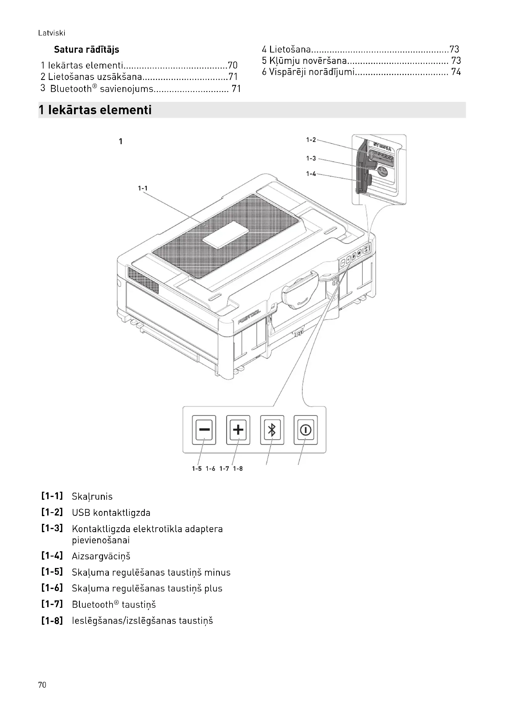 - TOPROCK BT 20 uzlade no USB kontakt-ligzdas [1-2] nav iespējama.