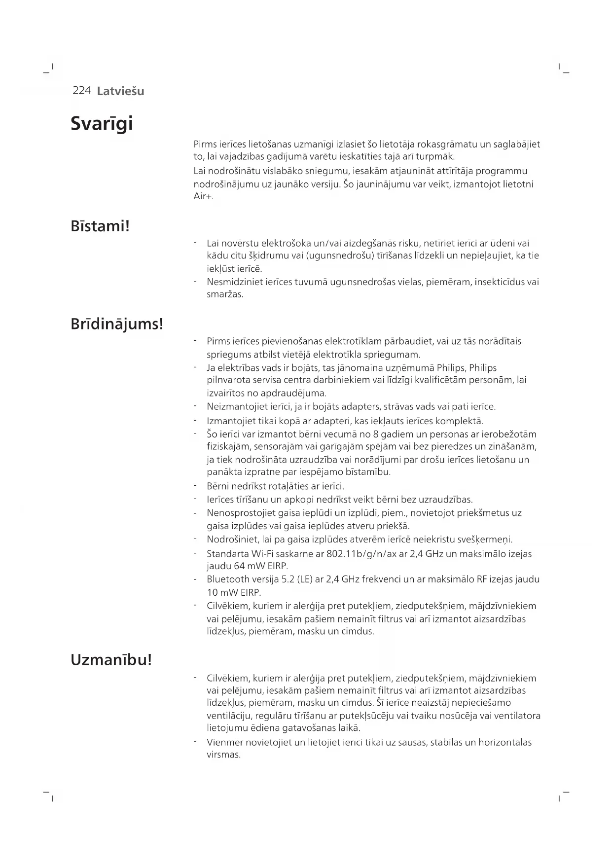 Ja elektribas vads ir bojats, tas jänomaina uzneumā Philips, Philips pilnvarota servisa centra darbiniekiem vai lidzigi kvalificetām personām, lai izvairitos no apdraudejuma. - Neizmantojiet ierici, ja ir bojats adapters, stravas vads vai pati erice.