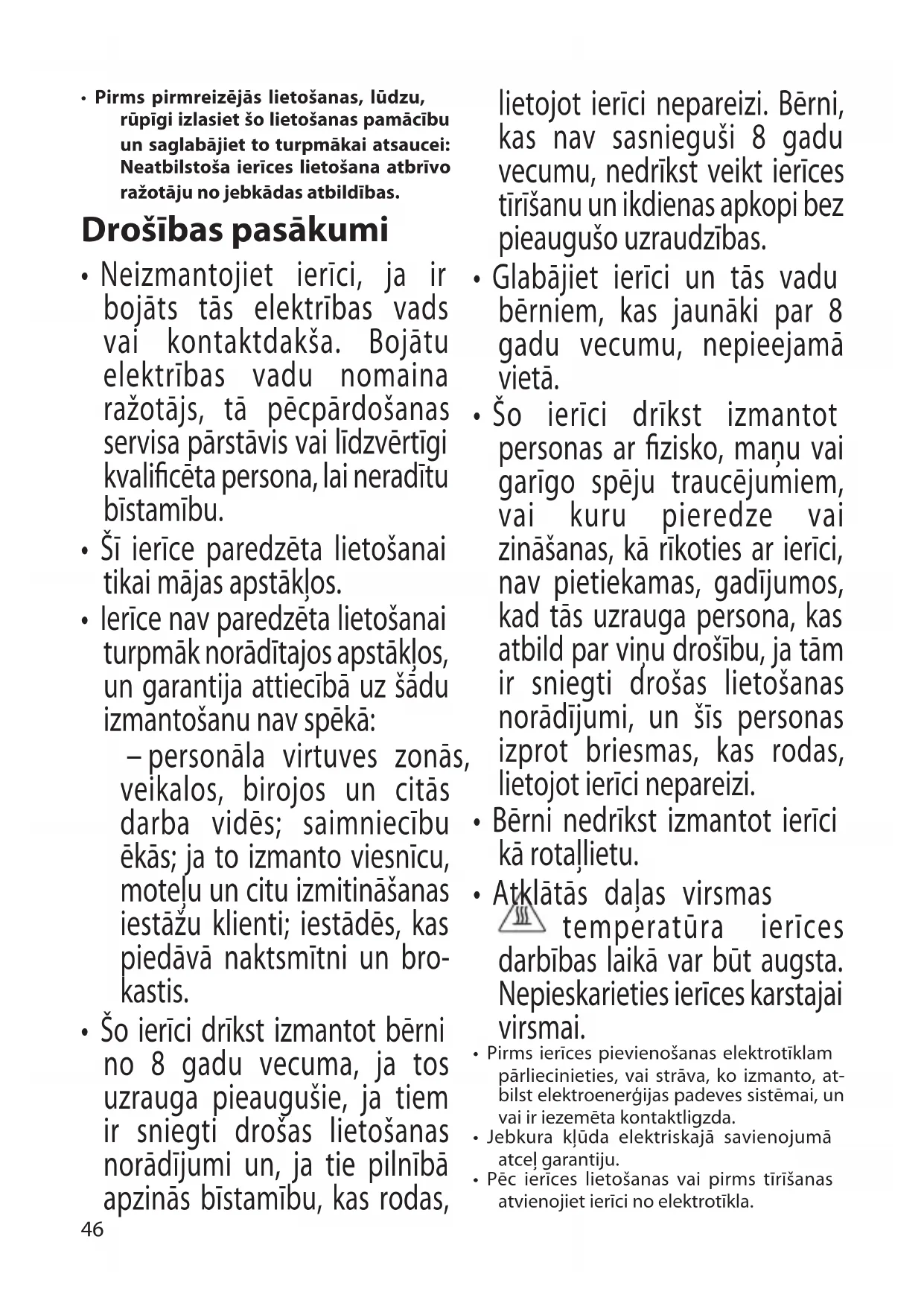 - Pēc ierīces lietošanas vai pirms tīrīšanas atvienojiet ierīci no elektrotīkla.47