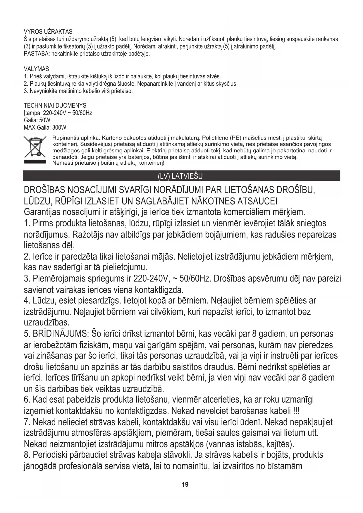 izstrādājumu. Neļaujiet bērniem vai cilvēkiem, kuri nepazīst ierīci, to izmantot bez uzraudzības. DROŠĪBAS NOSACĪJUMI SVARĪGI NORĀDĪJUMI PAR LIETOŠANAS DROŠĪBU, LŪDZU, RŪPĪGI IZLASIET UN SAGLABĀJIET NĀKOTNES ATSAUCEI