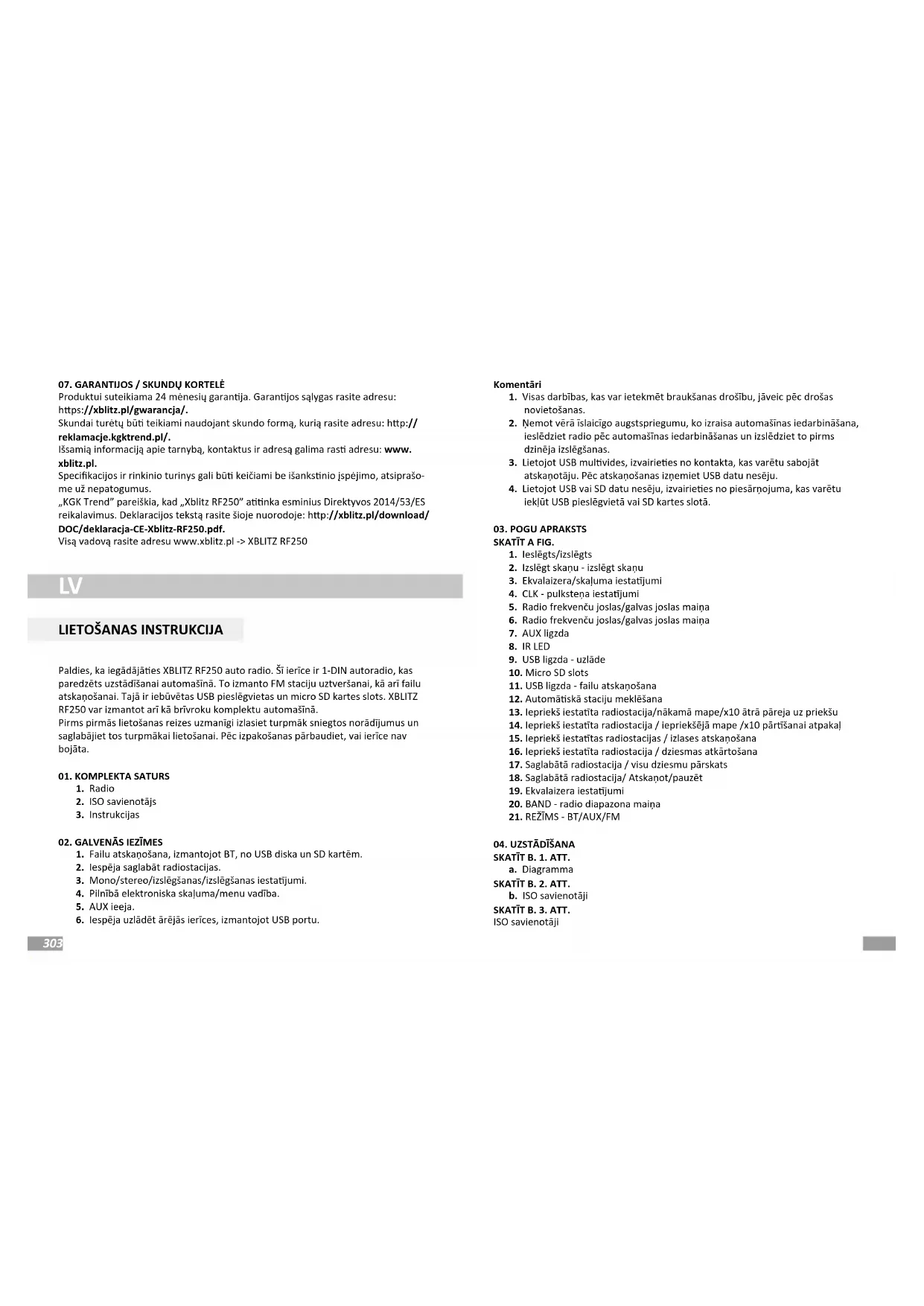 LIETOŠANAS INSTRUKCIJA RF250 Xblitz