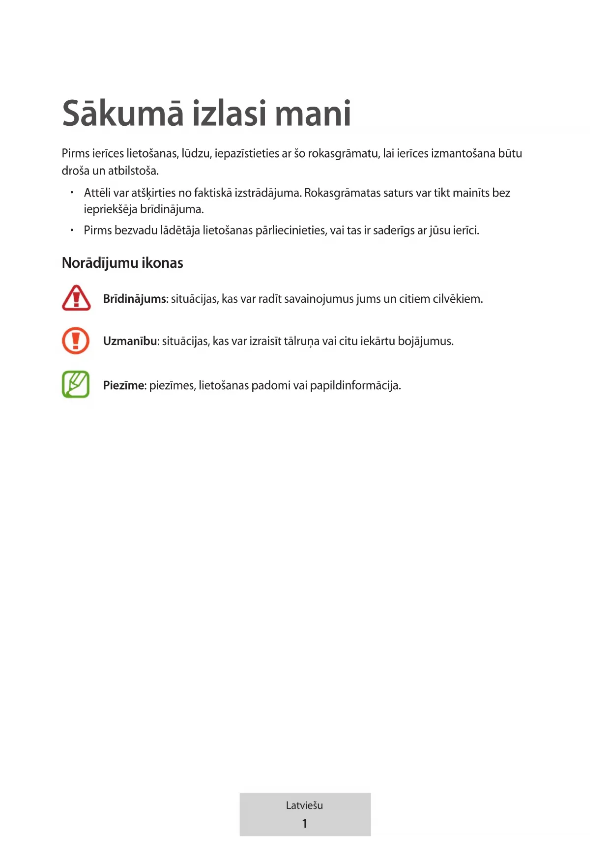 Todas as restantes marcas registadas são propriedade dos respectivos proprietários.1 Latviešu Sākumā izlasi mani Pirms ierīces lietošanas, lūdzu, iepazīstieties ar šo rokasgrāmatu, lai ierīces izmantošana būtu droša un atbilstoša.