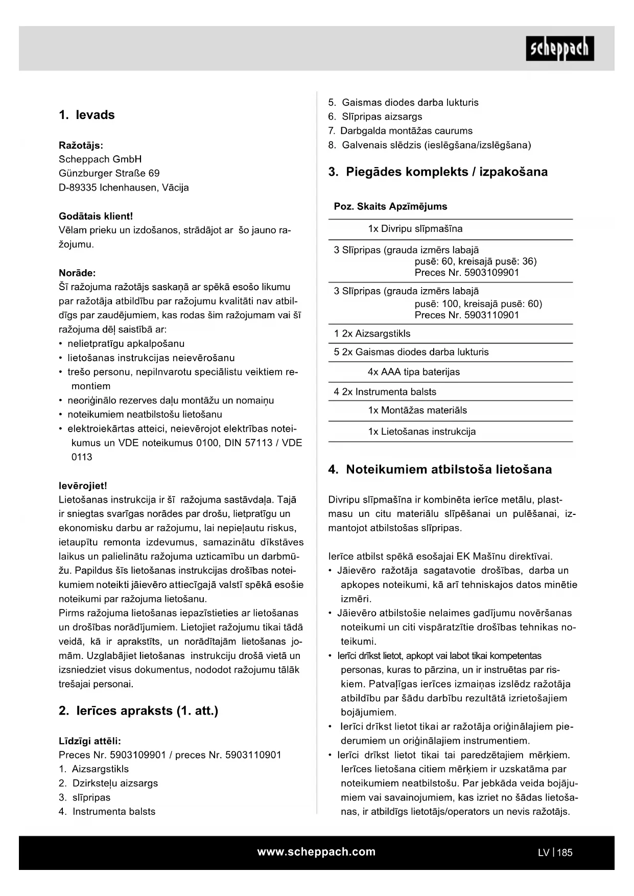 SM200AL - Dzirnaviņas SCHEPPACH - Bezmaksas lietošanas instrukcija