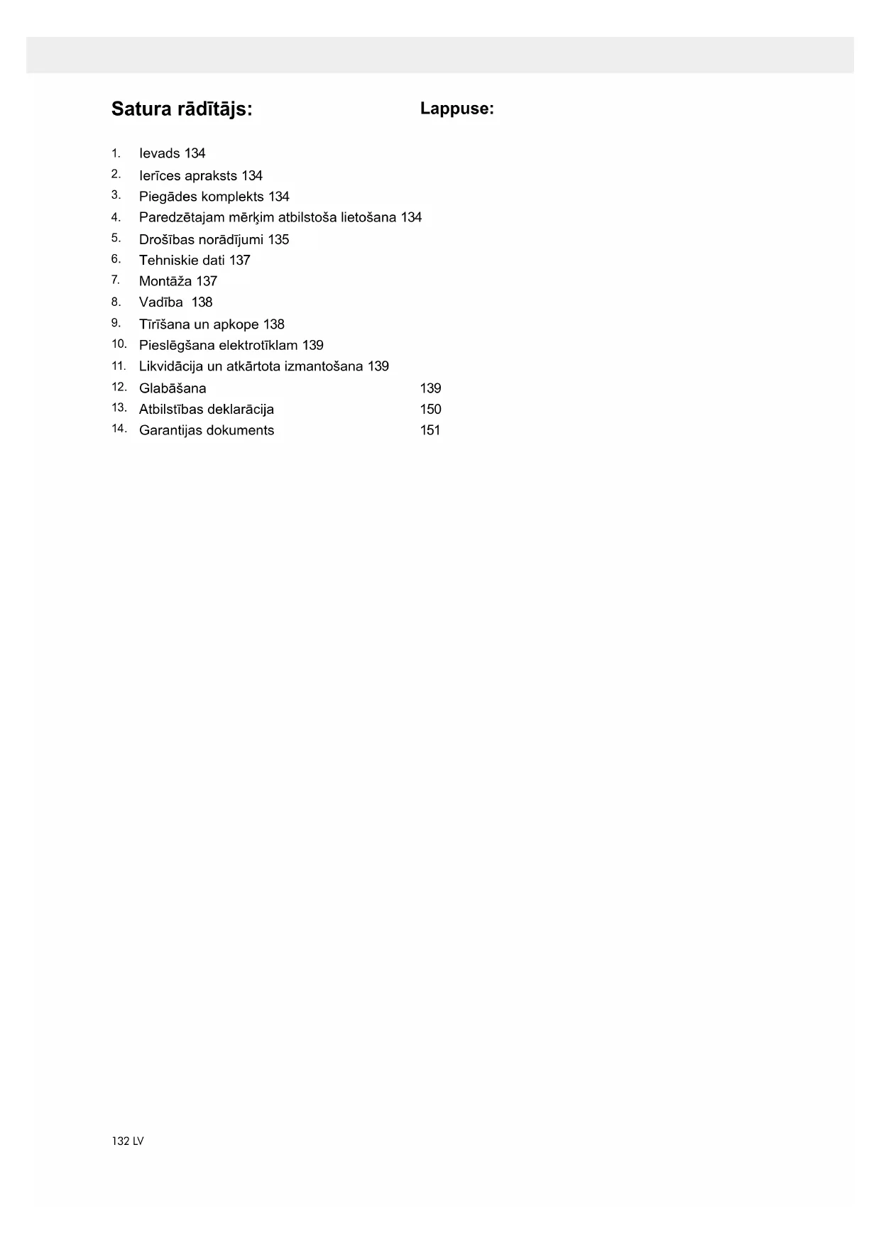 - Ierīci drīkst lietot tikai tai paredzētajiem mērķiem. Ierīces lietošana citiem mērķiem uzskatāma par neatbilstošu. Par jebkuriem bojājumiem vai savaino- jumiem, kas tādēļ radušies, ir atbildīgs lietotājs/ope- rators, nevis ražotājs.135LV