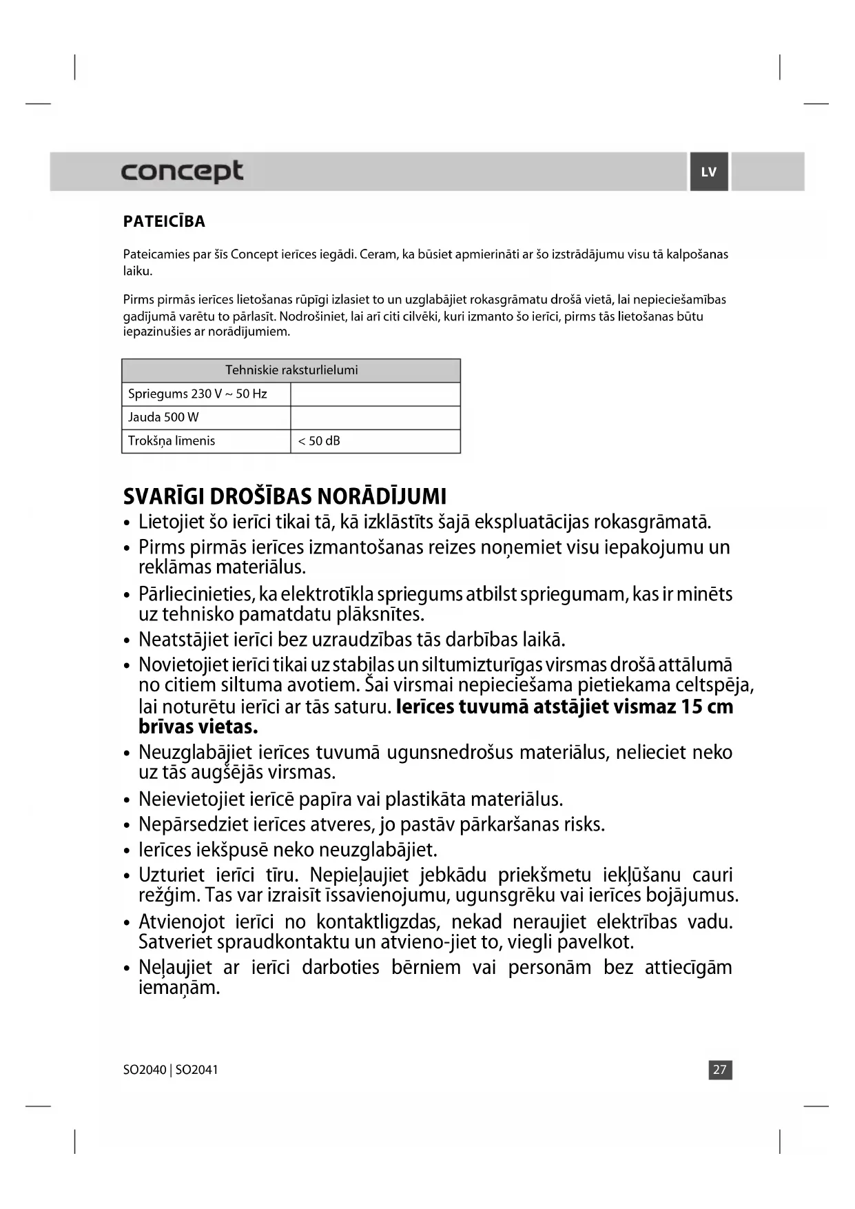 Atrodiet ierīces rokasgrāmatu bez maksas SO2041 Concept PDF formātā.