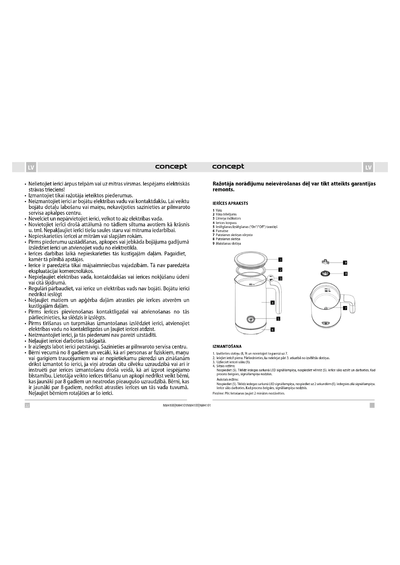 LIETOŠANAS INSTRUKCIJA NM4101 Concept