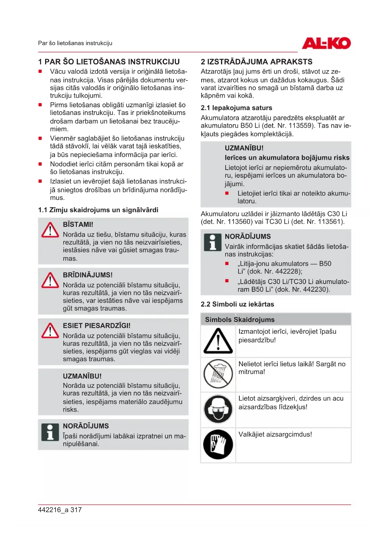 „Lādētājs C30 Li/TC30 Li akumulato- ram B50 Li” (dok. Nr. 442230).