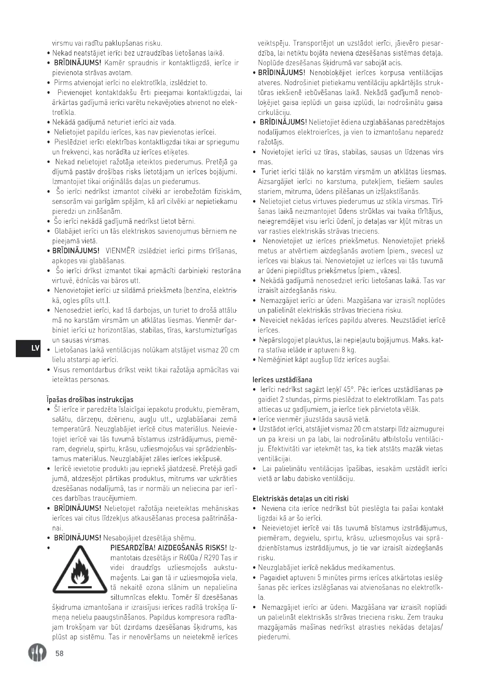 PIESARDZĪBA! AIZDEGŠANĀS RISKS! Iz- mantotais dzesētājs ir R600a / R290 Tas ir videi draudzīgs uzliesmojošs aukstu
