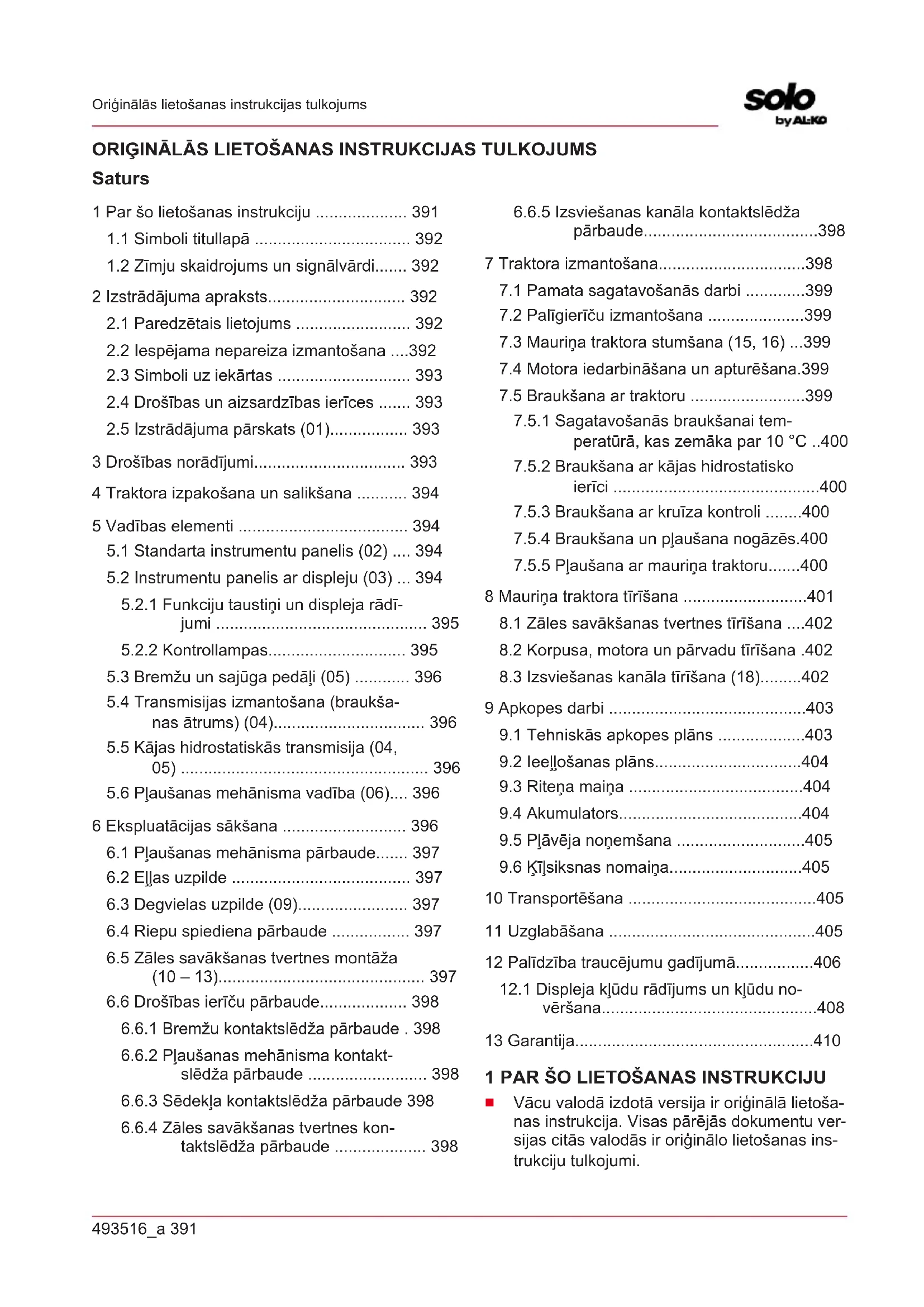 T1595.6 HDA - Traktors SOLO - Bezmaksas lietošanas instrukcija