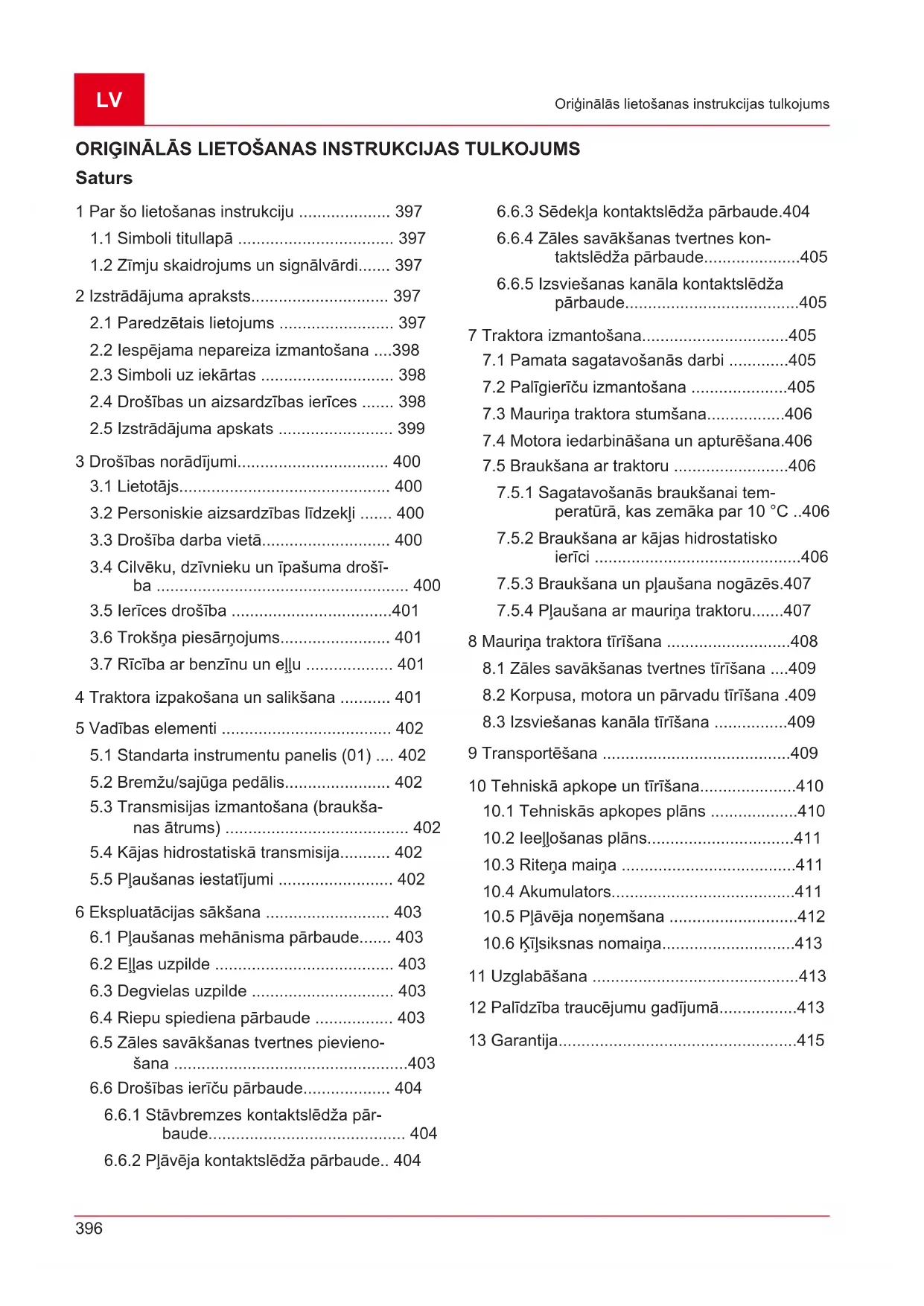 6.6.2 Pļāvēja kontaktslēdža pārbaude.. 404