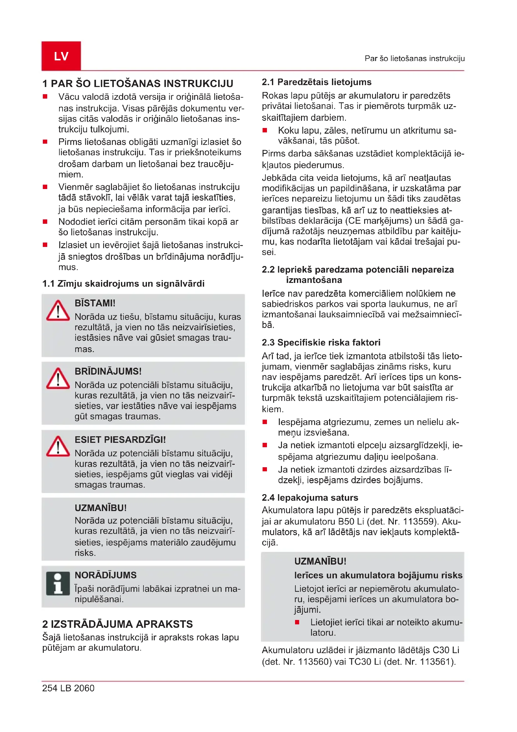Glabājiet visus dokumentus turpmā- kai uzziņai.LV 256 LB 2060 Drošības norādījumi