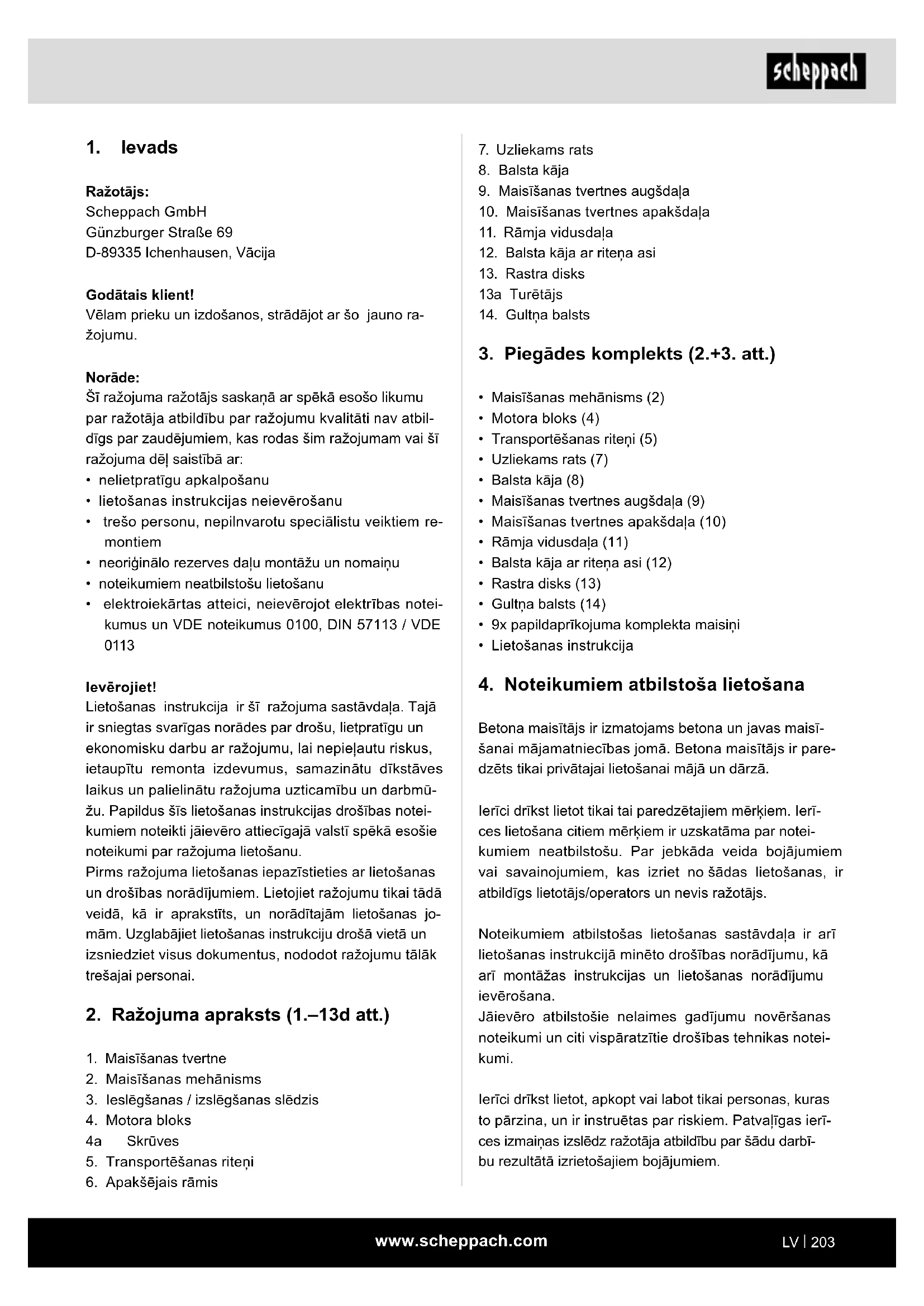 MIX140 - Cementa maisītājs SCHEPPACH - Bezmaksas lietošanas instrukcija