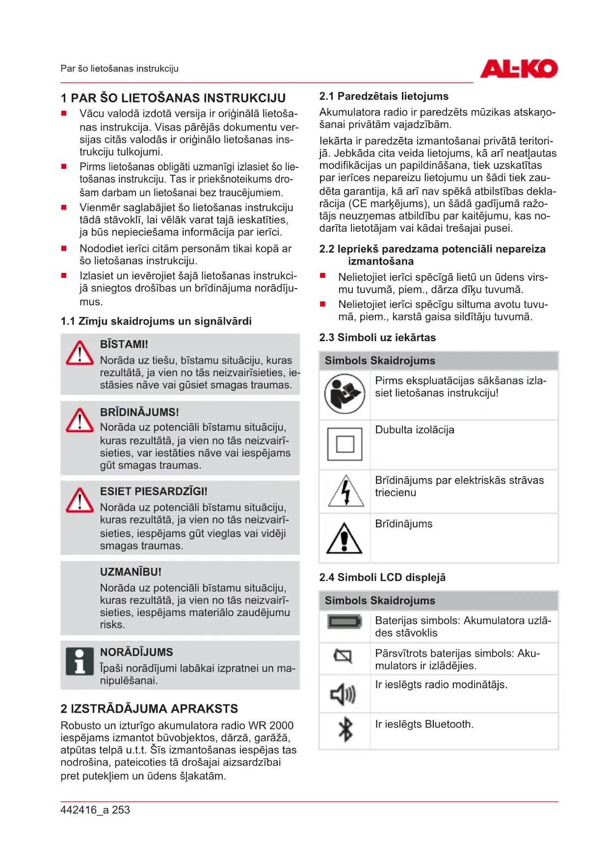 252 WR 2000 Oriģinālās lietošanas instrukcijas tulkojums