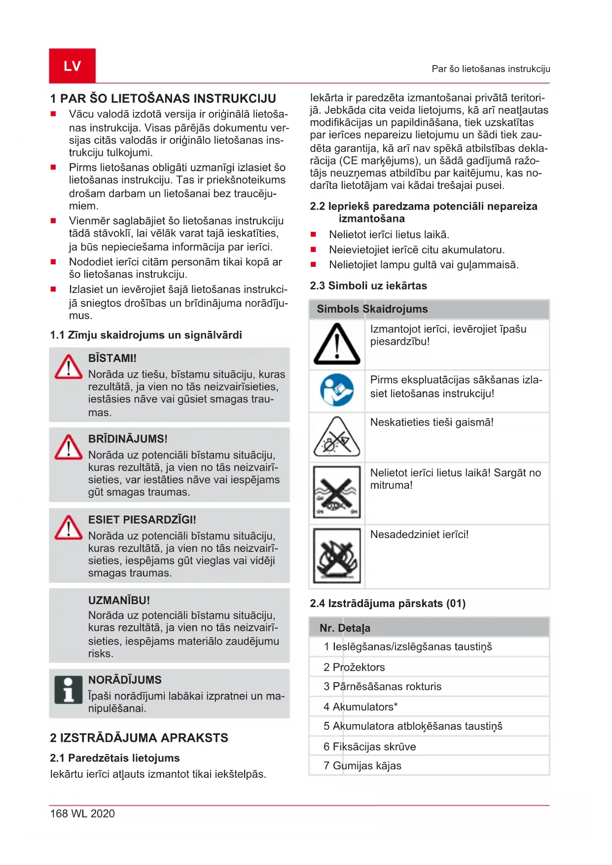 Izlasiet un ieverojiet saja lietoanas instrukci-ja sniegtos drosibas un bridinajuma noradijumus.
