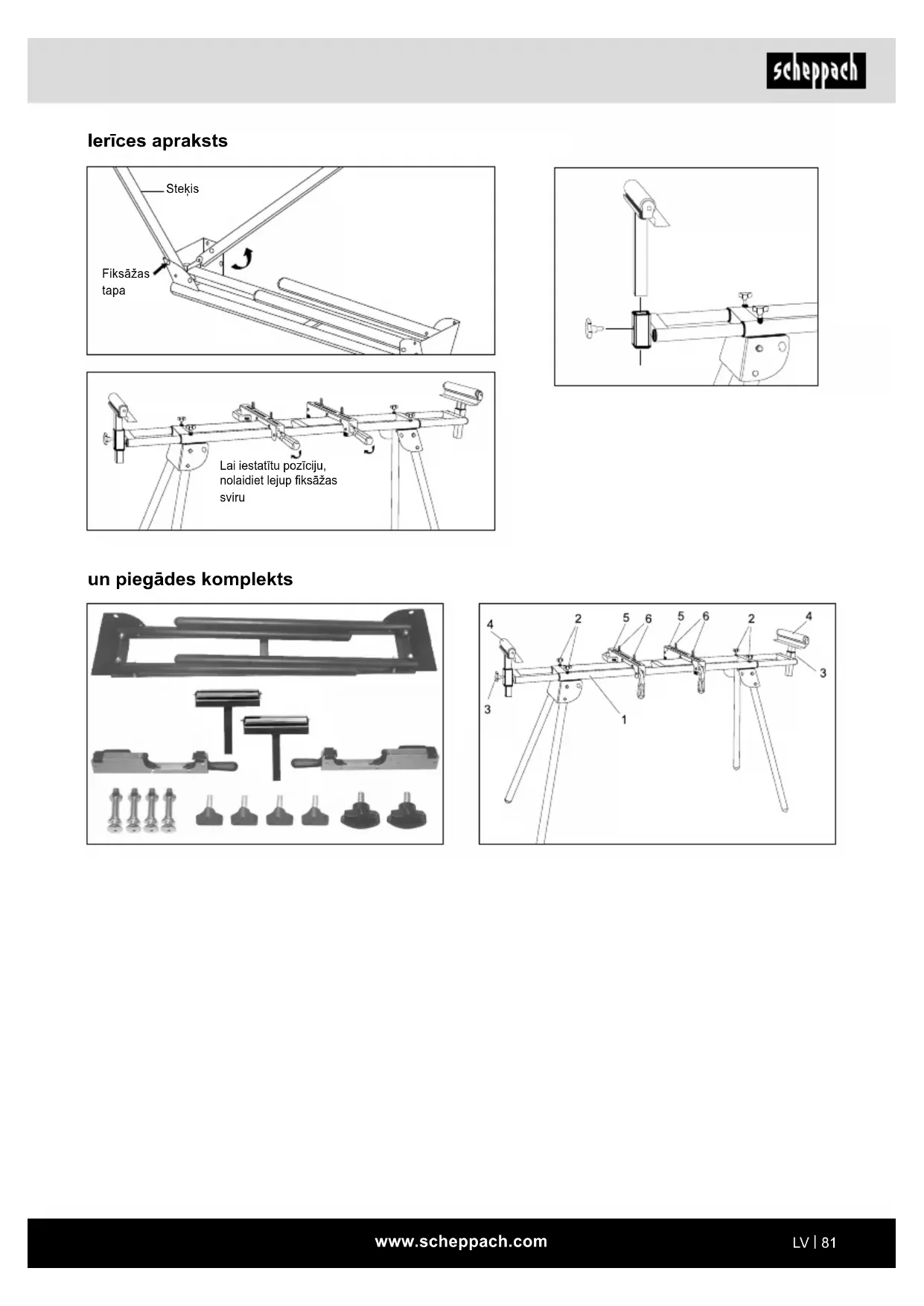 Steķis Fiksāžas tapa Lai iestatītu pozīciju, nolaidiet lejup ksāžas sviru un piegādes komplekts Ierīces aprakstswww.scheppach.com