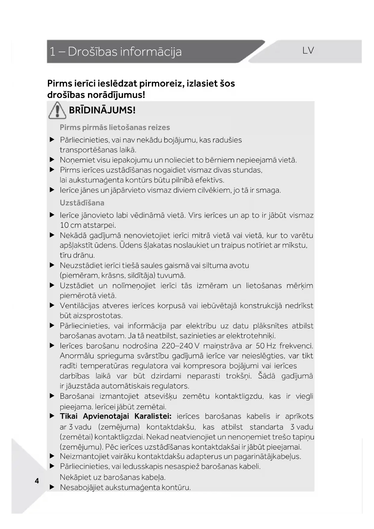 Pirms jebkuras darbibas veiksanas atvienojiet ierici no elektrotikla.