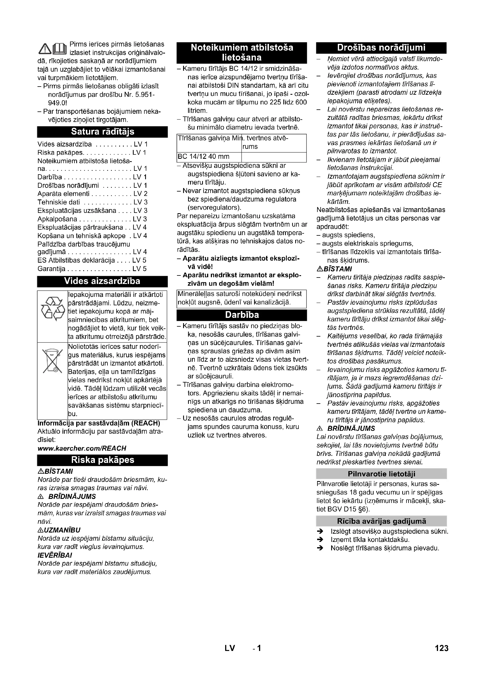 LIETOŠANAS INSTRUKCIJA BC 1412 Kärcher