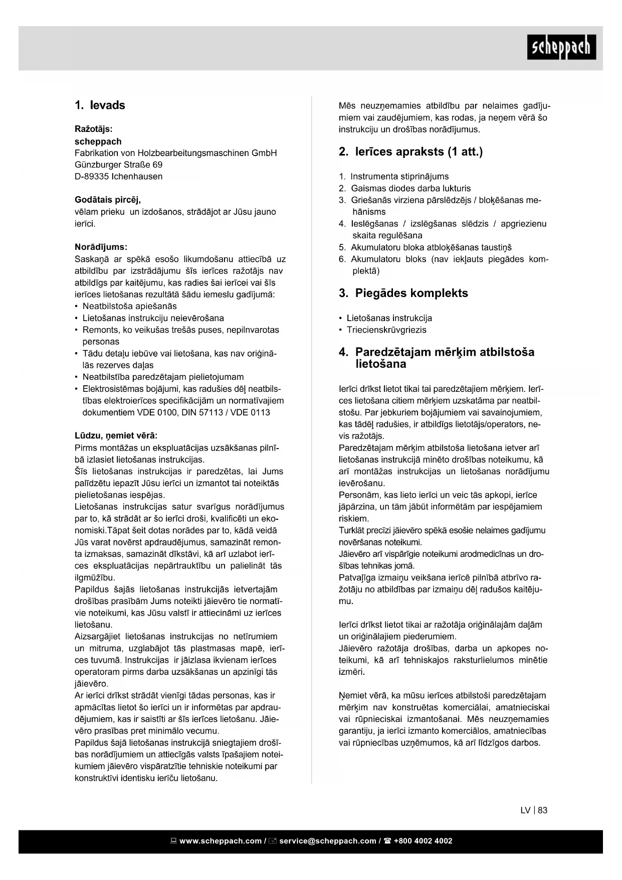 LIETOŠANAS INSTRUKCIJA CID15020ProS SCHEPPACH