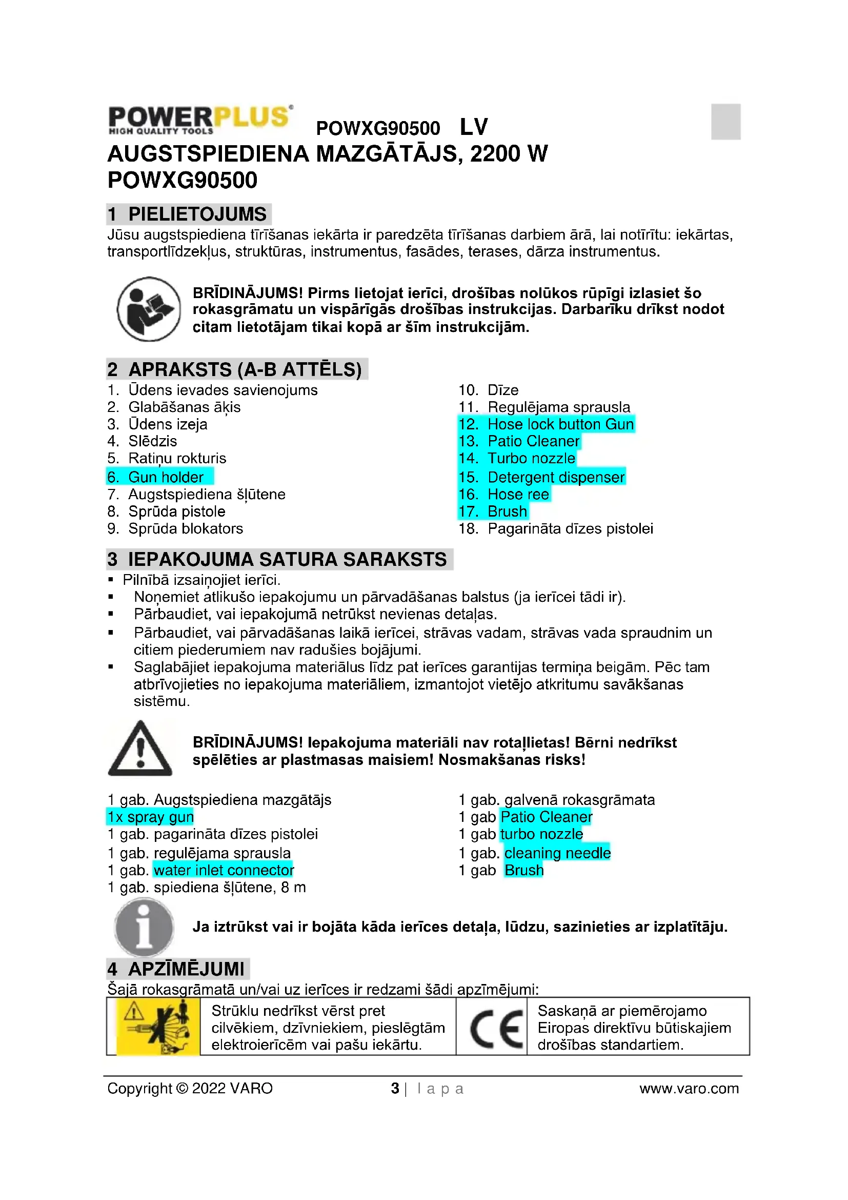 POWXG90500 - Augstspiediena tīrītājs PowerPlus - Bezmaksas lietošanas instrukcija