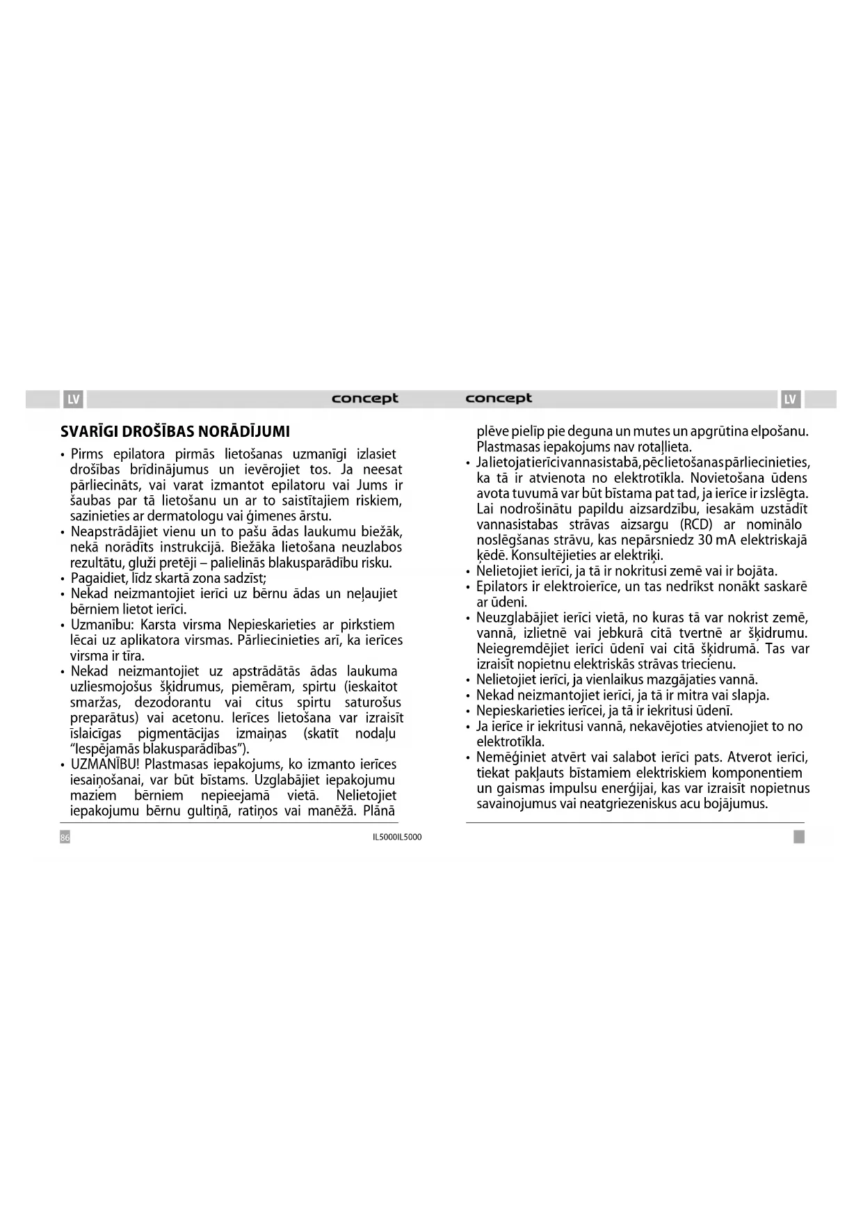 Perfect Skin IL5000 - Epilators Concept - Bezmaksas lietošanas instrukcija