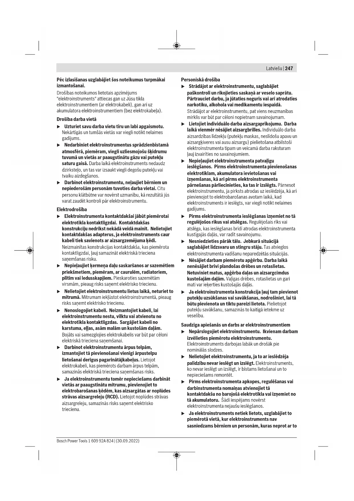 maks. . Ja Z maks. nav zināms, nosakiet Z maks. , konsultējoties ar tīkla piegādātāju vai piegādes iestādi. Informācija par troksni un vibrācijām Instrumenta radītā trokšņa parametri ir noteikti atbilstoši standartam EN60745‑2‑3. Pēc A raksturlīknes izsvērtais elektroinstrumenta radītā trokšņa parametri tipiskā gadījumā sasniedz šādas vērtības: Bosch Power Tools 1 609 92A 824 | (30.09.2022)252 | Latviešu skaņas spiediena līmenis 97 dB(A); skaņas jaudas līmenis 108 dB(A). Izkliede K = 3 dB. Nēsājiet ausu aizsargus! Kopējā vibrācijas paātrinājuma vērtība a