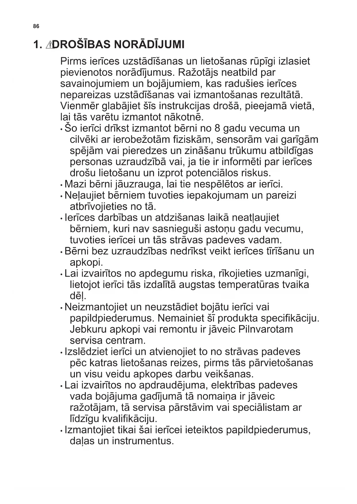 - Bērni bez uzraudzības nedrīkst veikt ierīces tīrīšanu un apkopi.