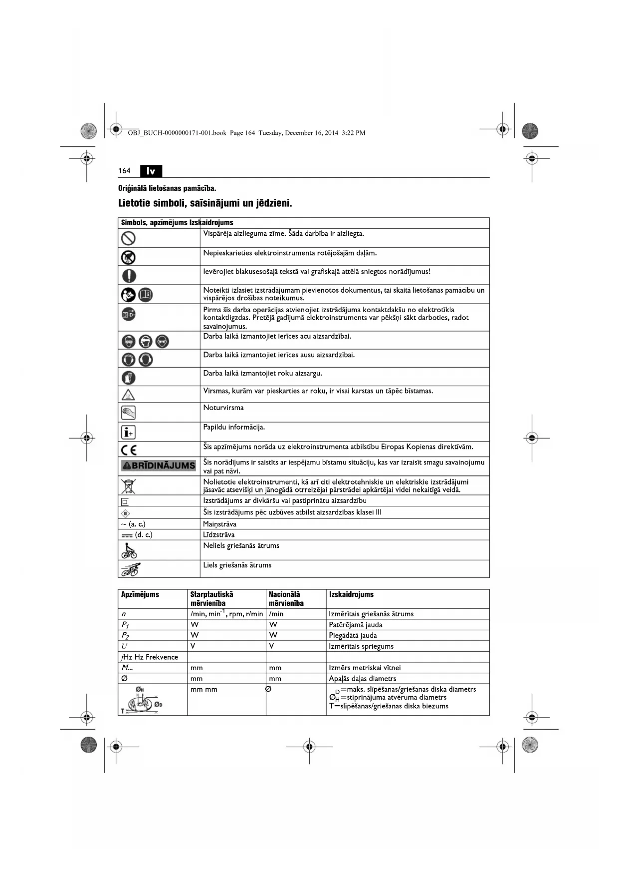 =stiprinājuma atvēruma diametrs T=slīpēšanas/griešanas diska biezums OBJ_BUCH-0000000171-001.book Page 164 Tuesday, December 16, 2014 3:22 PM165