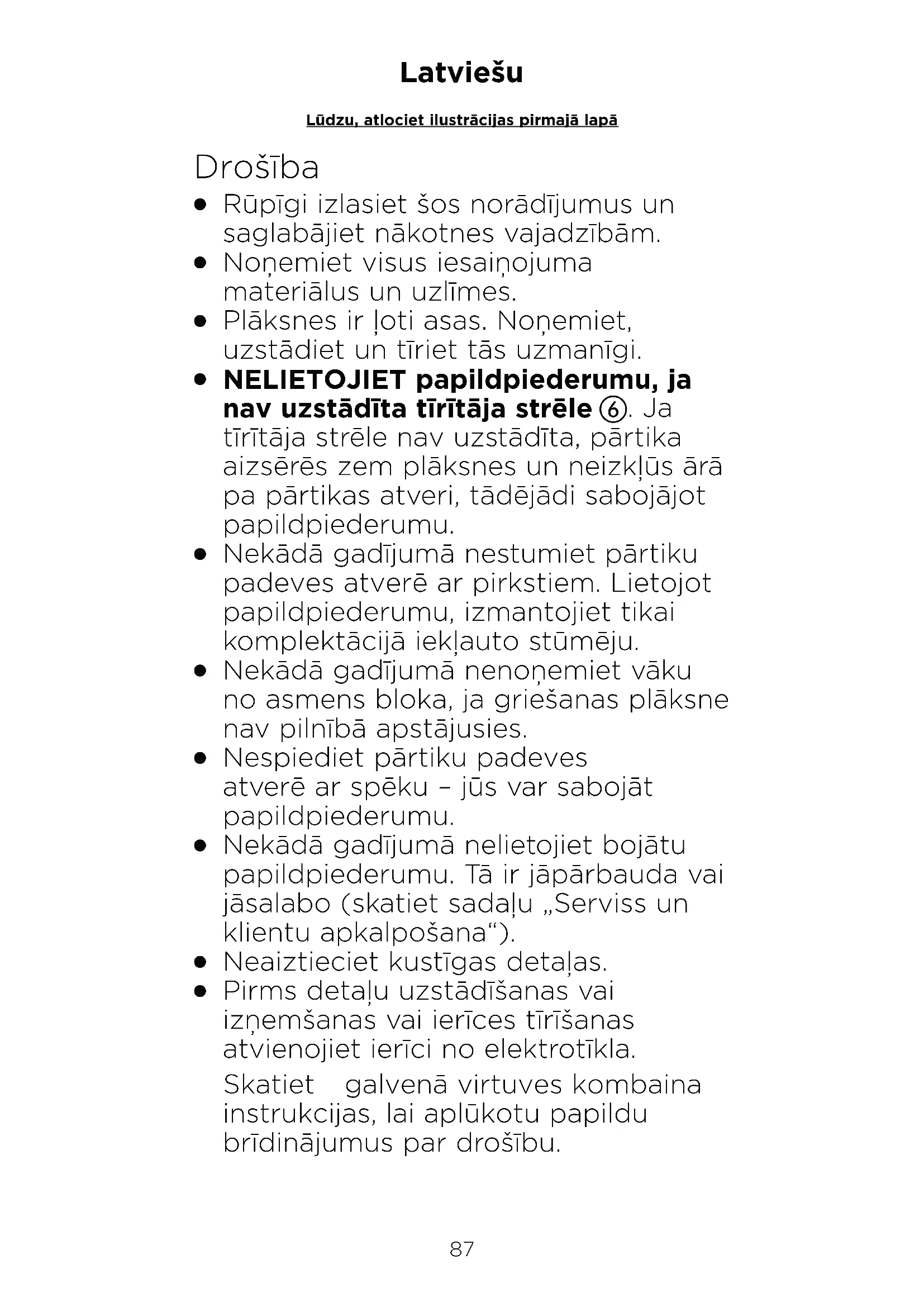 Pagamintas Kinijoje.87 Latviešu Lūdzu, atlociet ilustrācijas pirmajā lapā Drošība