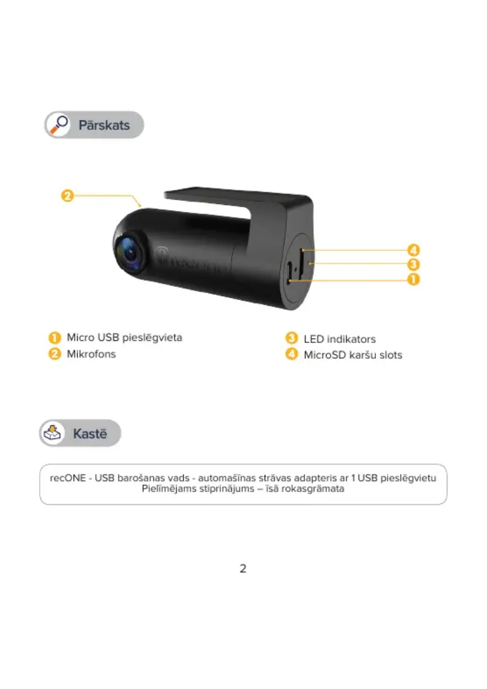 - Lai ierakstītu video un uzņemtu fotogrāfijas, recONE nepieciešama microSD karte (microSD karte nav iekļauta)