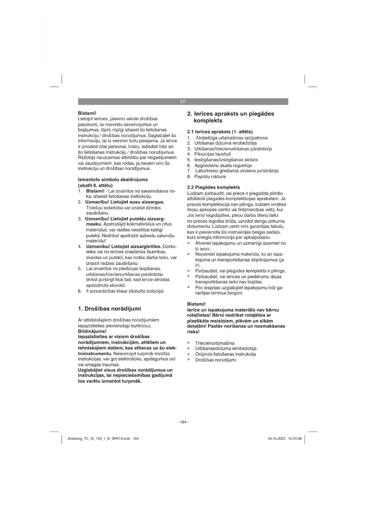 roku vibrācijas, ja ierīci lieto ilgāku laiku, kā arī ja to lieto neatbilstoši un pienācīgi neap- kopj. Anleitung_TC_ID_720_1_E_SPK13.indb 185Anleitung_TC_ID_720_1_E_SPK13.indb 185 26.10.2023 16:24:0926.10.2023 16:24:09LV