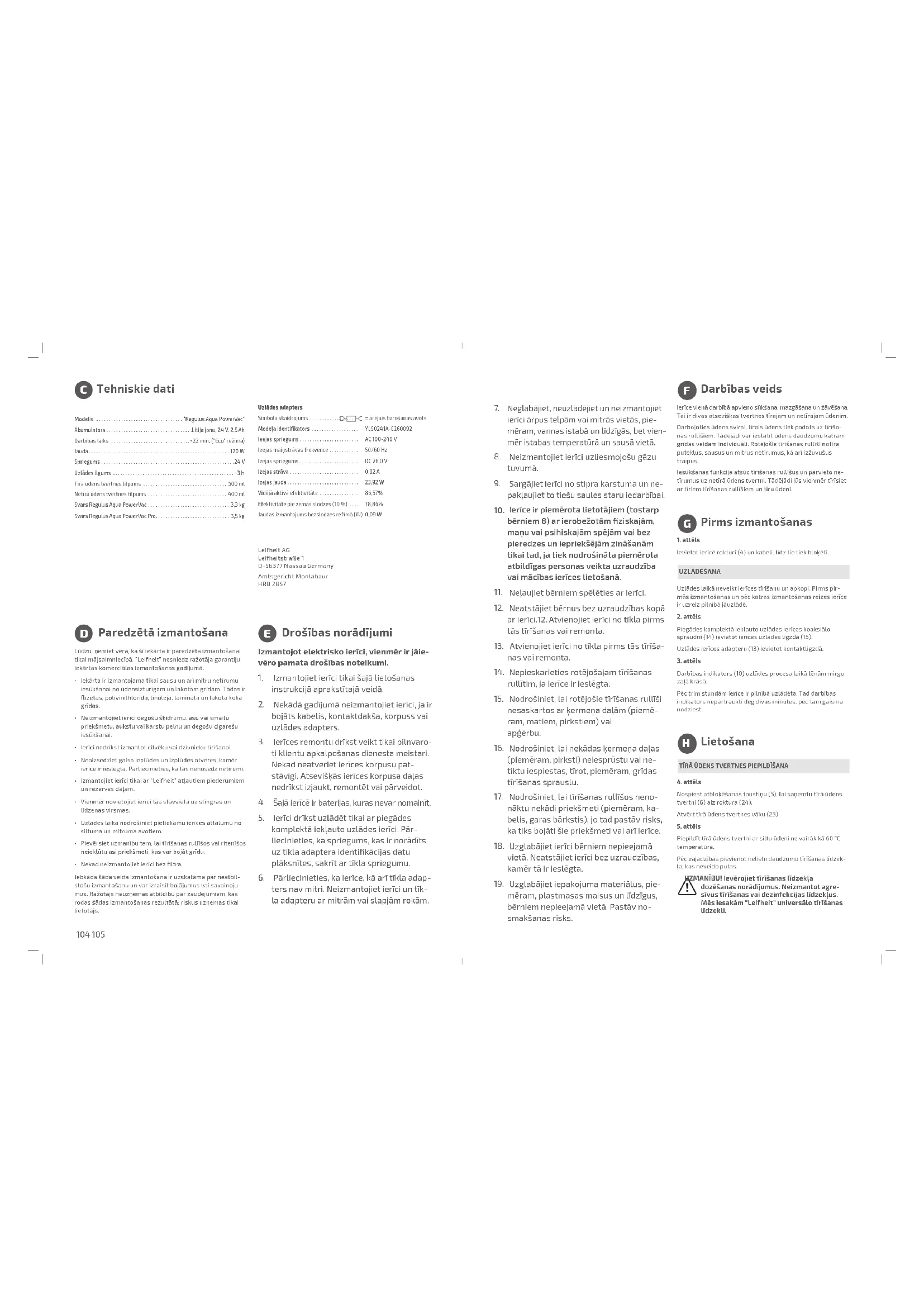 LIETOŠANAS INSTRUKCIJA Regulus Aqua PowerVac Pro Leifheit