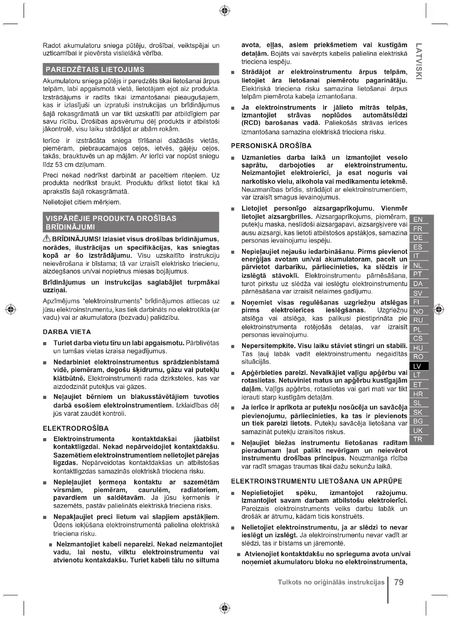 ELEKTROINSTRUMENTU LIETOŠANA UN APRŪPE