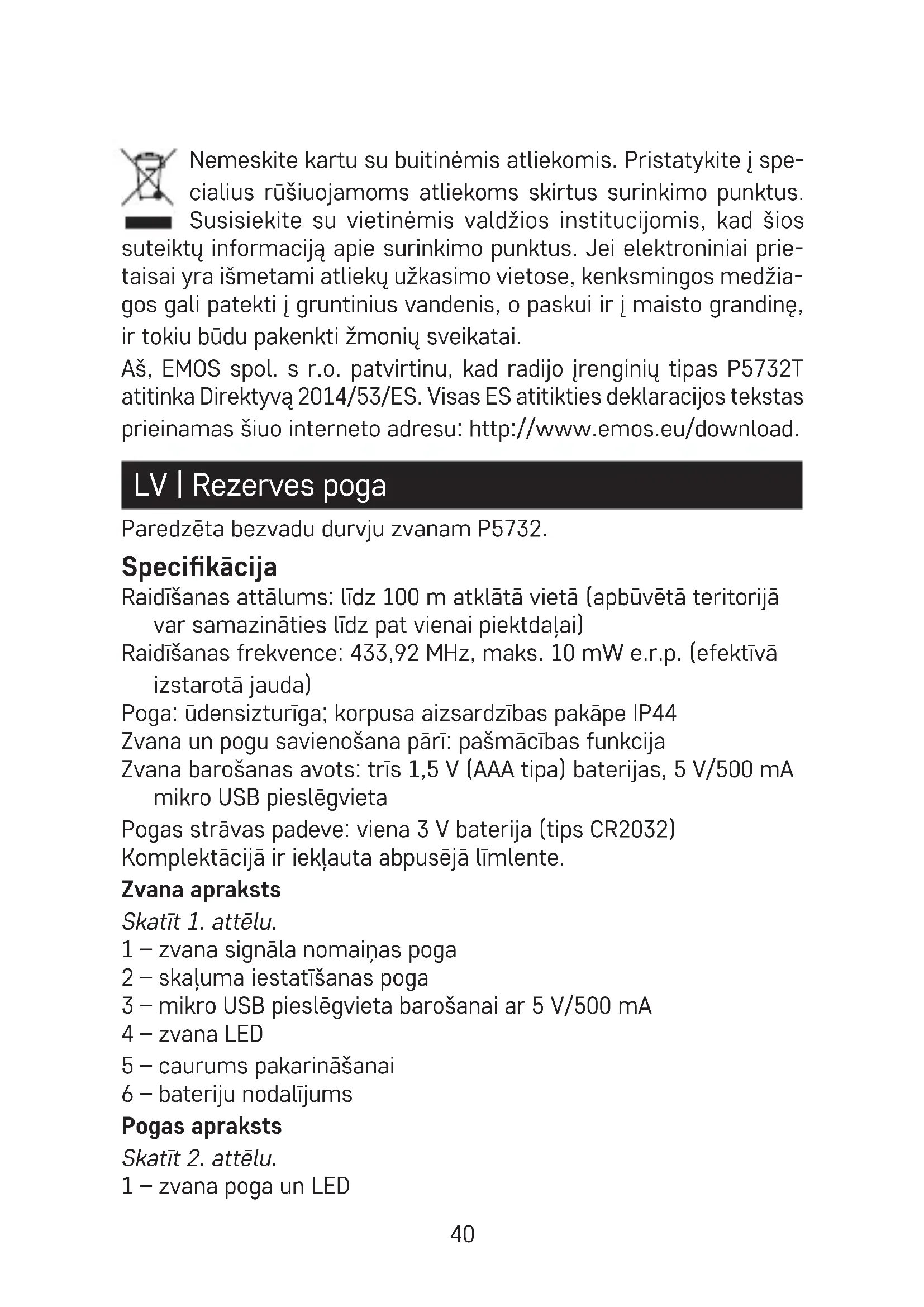 P5732T - Durvju zvani Emos - Bezmaksas lietošanas instrukcija