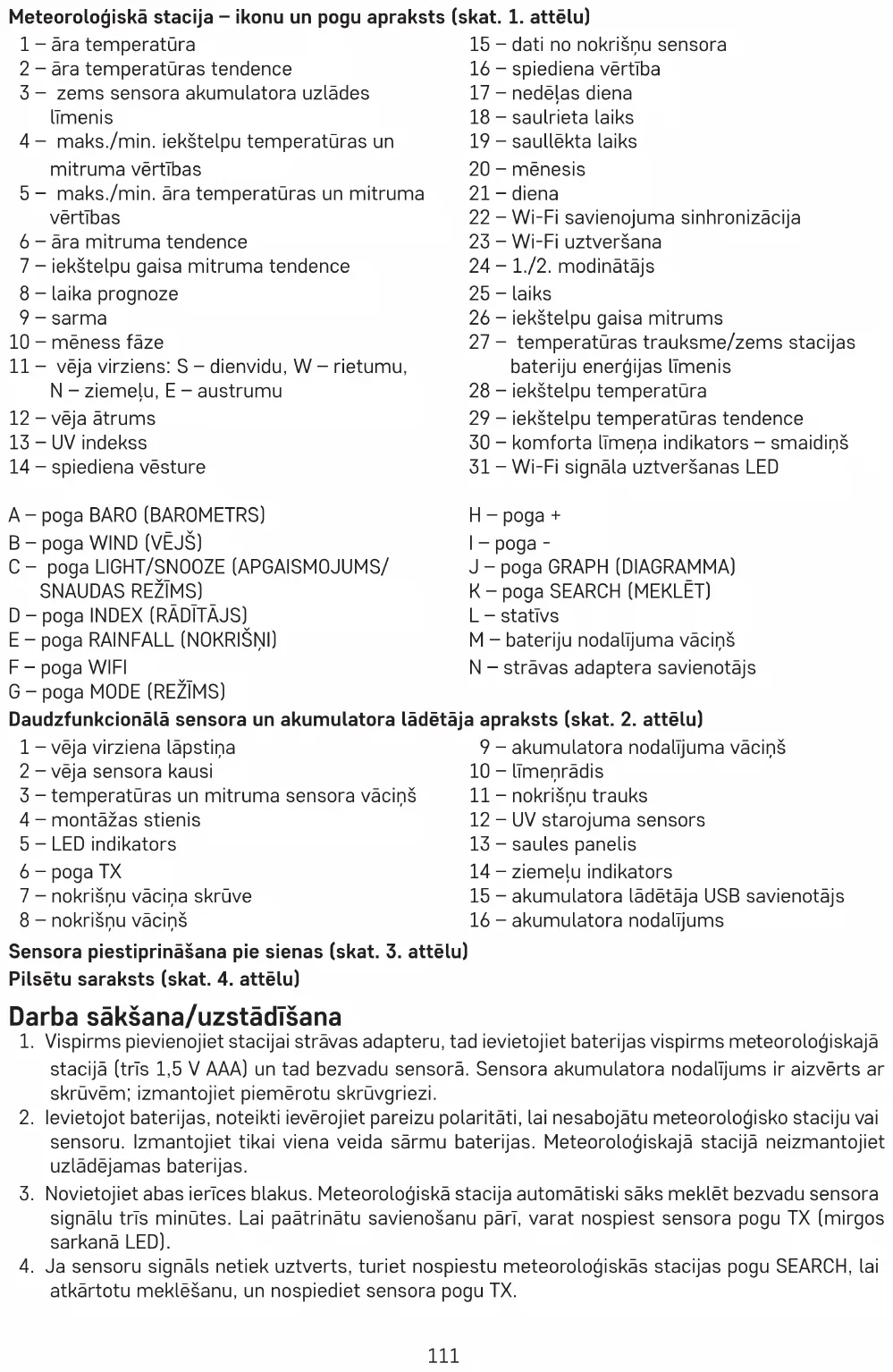 sensoru. Izmantojiet tikai viena veida sārmu baterijas. Meteoroloģiskajā stacijā neizmantojiet uzlādējamas baterijas.