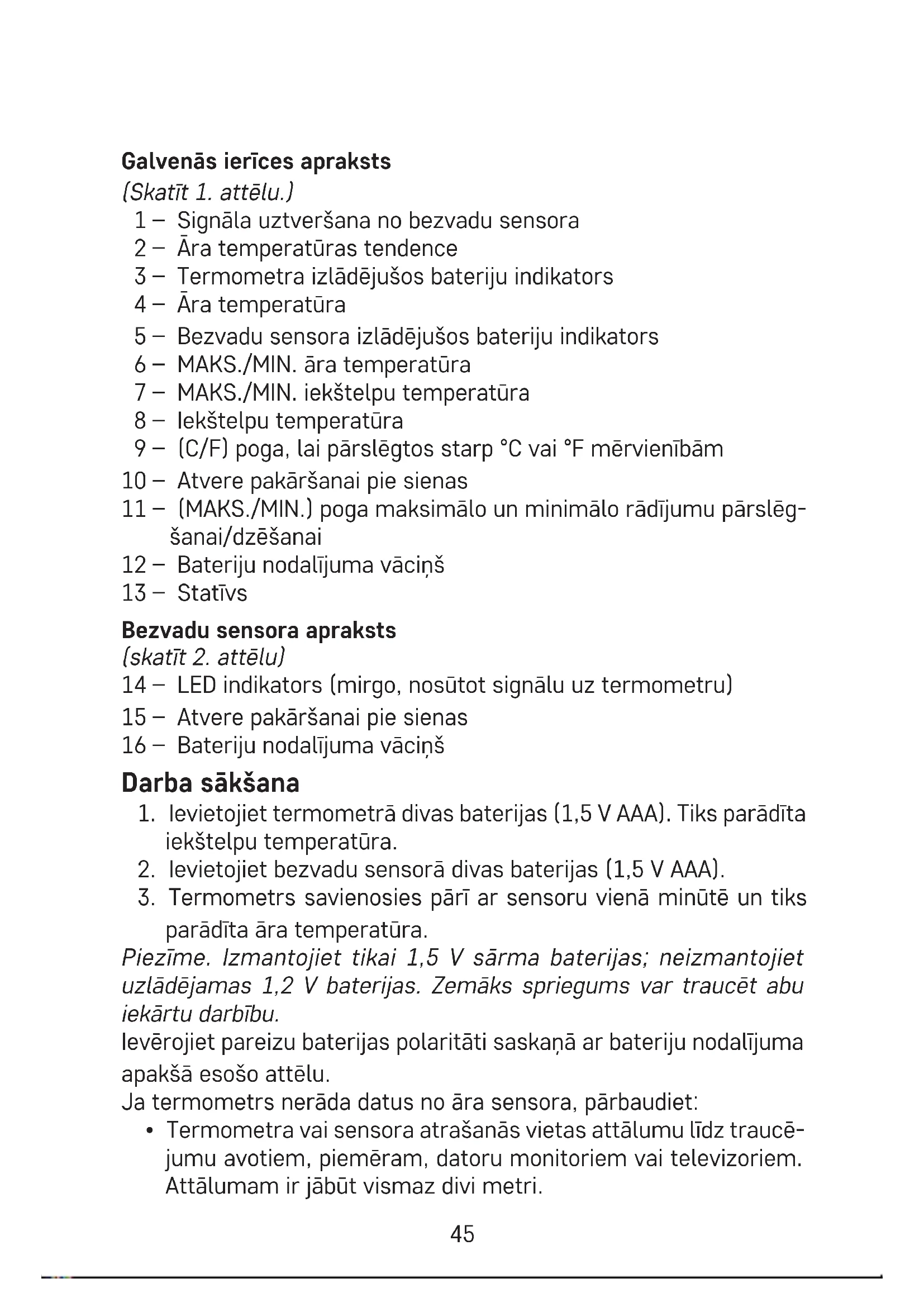 - Vai termometra darbību neietekmē citas ierīces ar līdzīgu darbības frekvenci (bezvadu austiņas, bezvadu žalūziju pults, vārtu pults, garāžas durvju pults u. c.) vai arī tuvākajā apkārtnē izmantotas bezvadu ierīces.