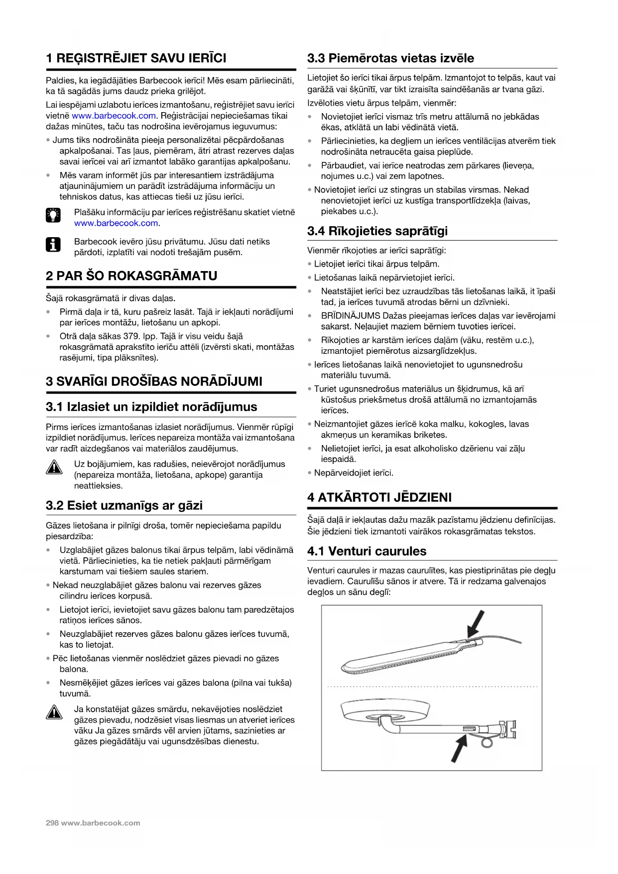 Paldies, ka iegādājāties Barbecook ierīci! Mēs esam pārliecināti, ka tā sagādās jums daudz prieka grilējot. Lai iespējami uzlabotu ierīces izmantošanu, reģistrējiet savu ierīci vietnē www.barbecook.com. Reģistrācijai nepieciešamas tikai dažas minūtes, taču tas nodrošina ievērojamus ieguvumus: