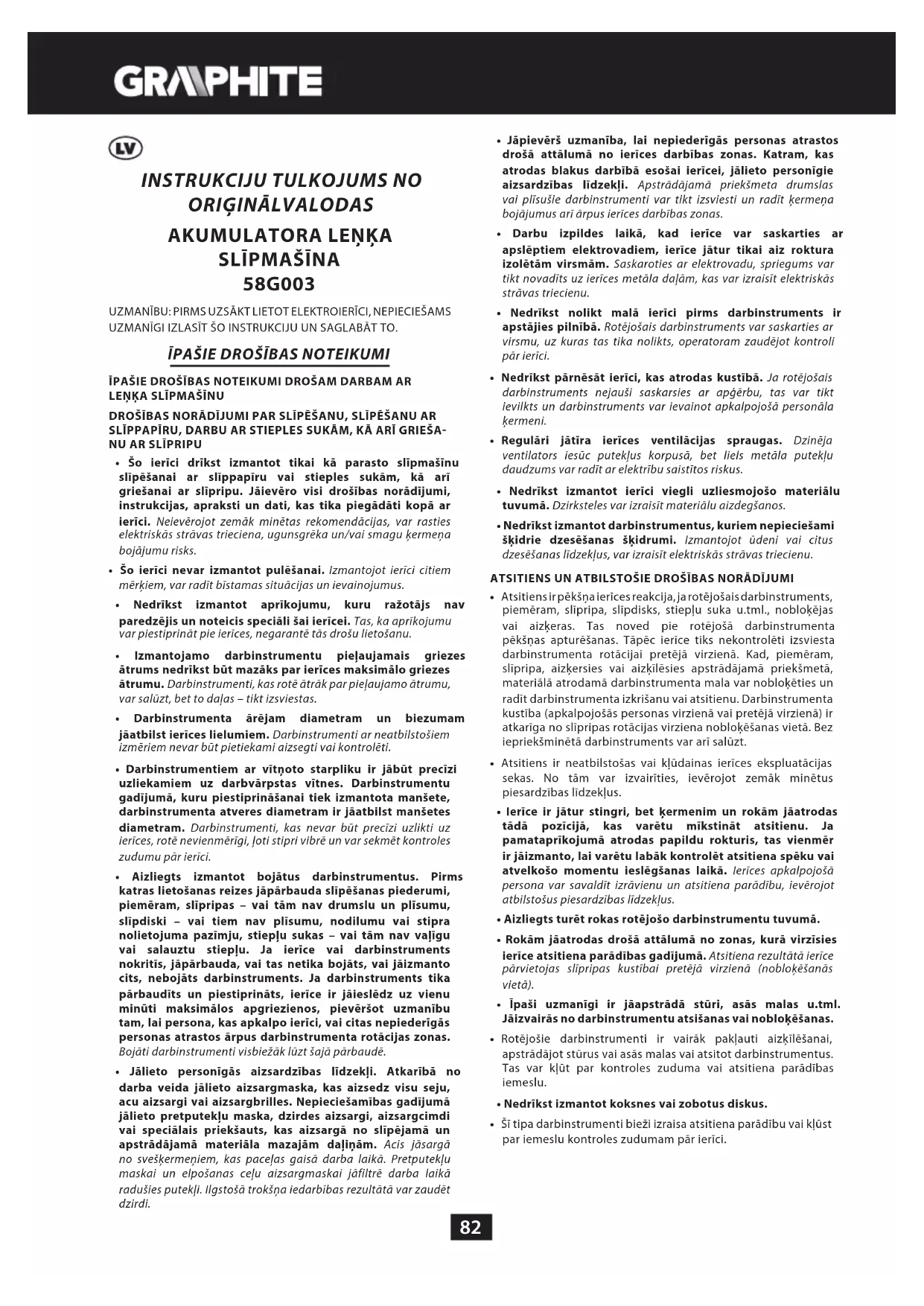 LIETOŠANAS INSTRUKCIJA 58G003 Graphite