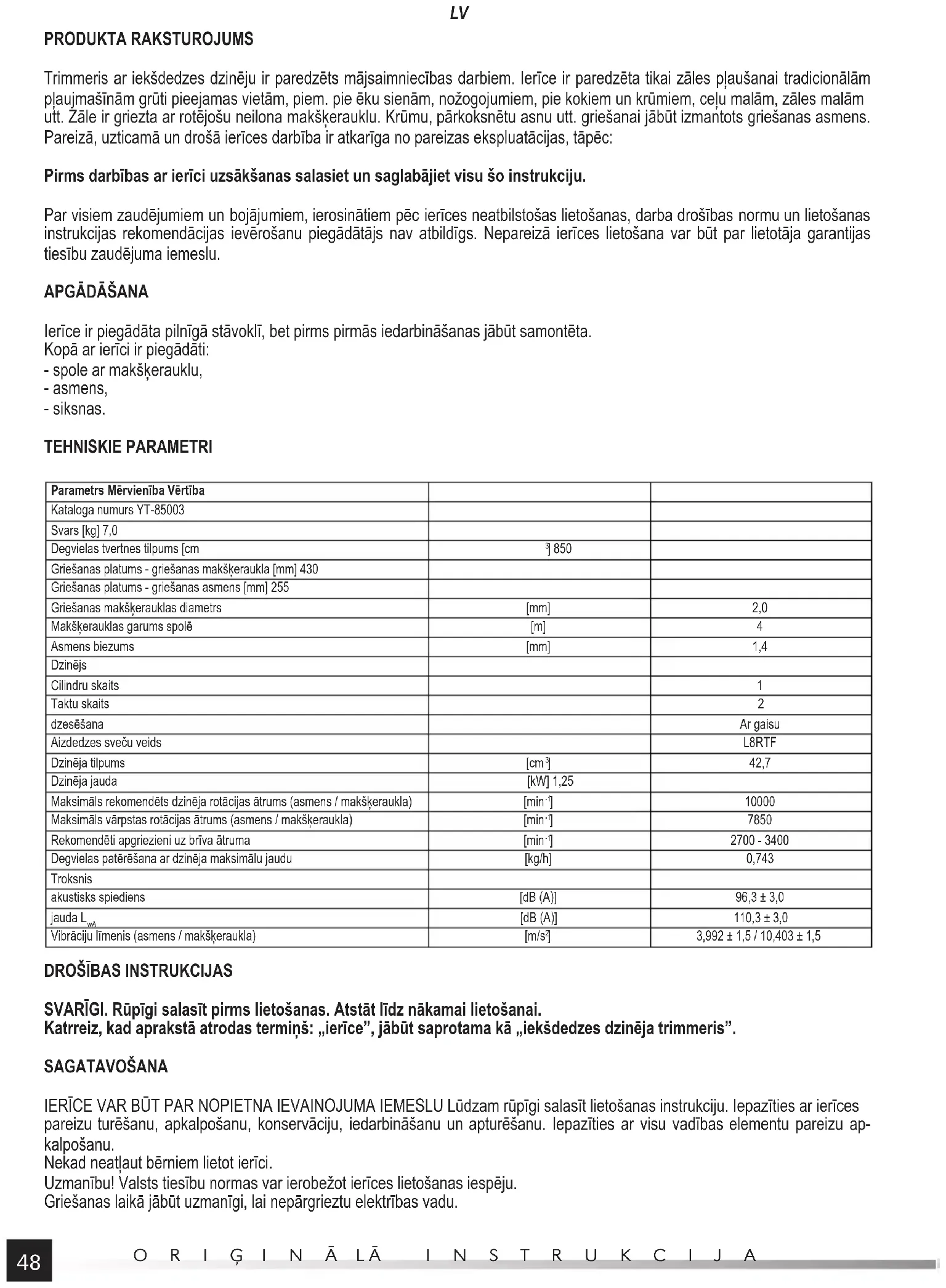 YT85003 - Zāles trimmeris Yato - Bezmaksas lietošanas instrukcija