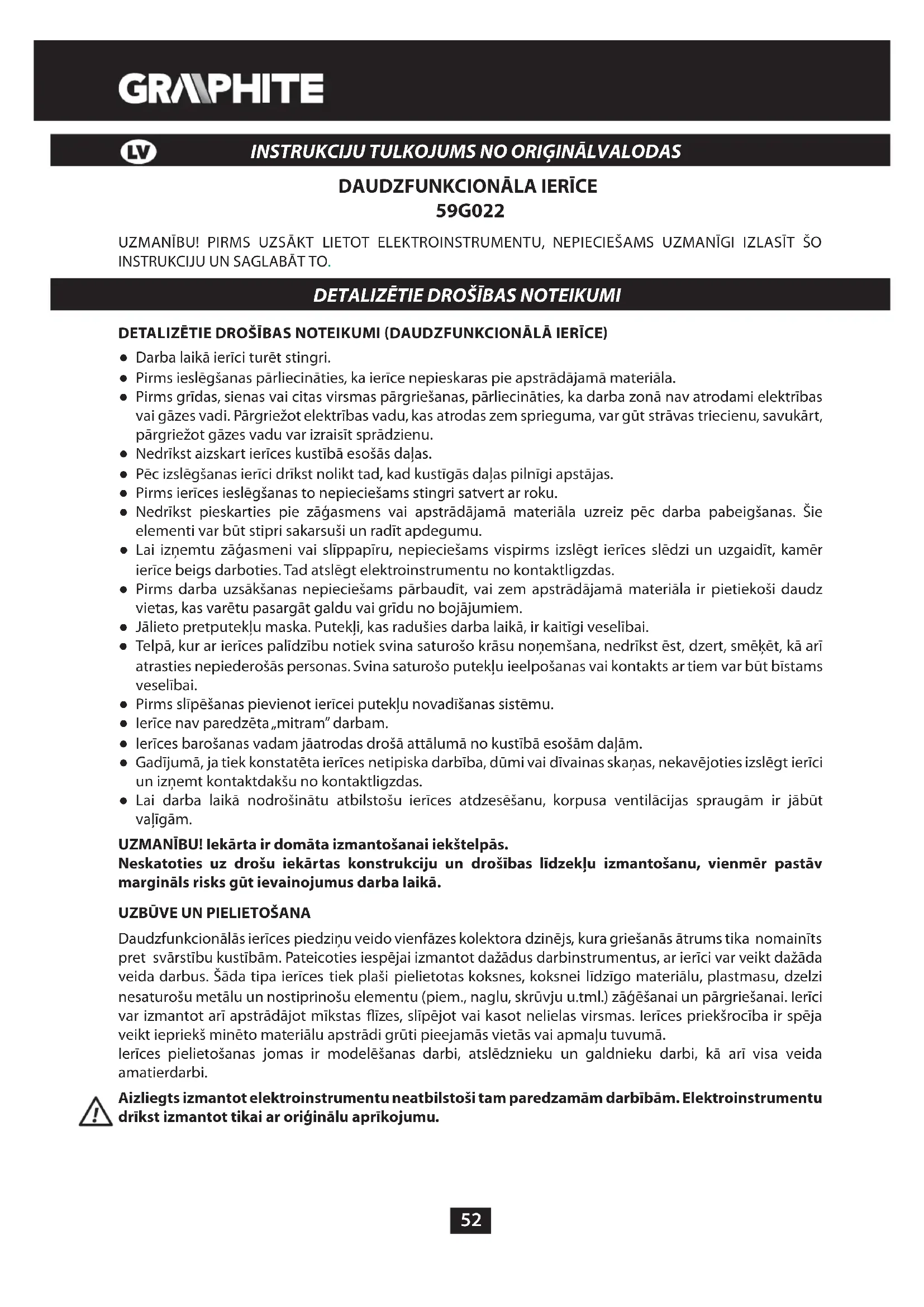 59G022 - Daudzfunkcionālie rīki Graphite - Bezmaksas lietošanas instrukcija