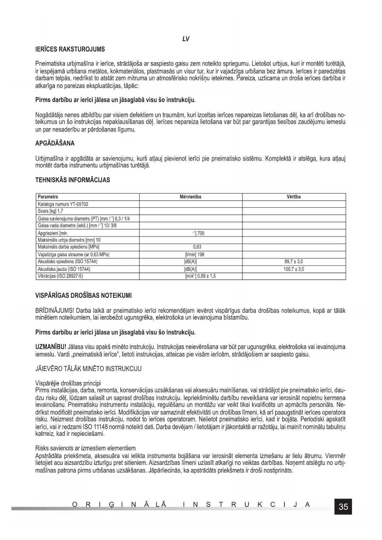 LIETOŠANAS INSTRUKCIJA YT09702 Yato