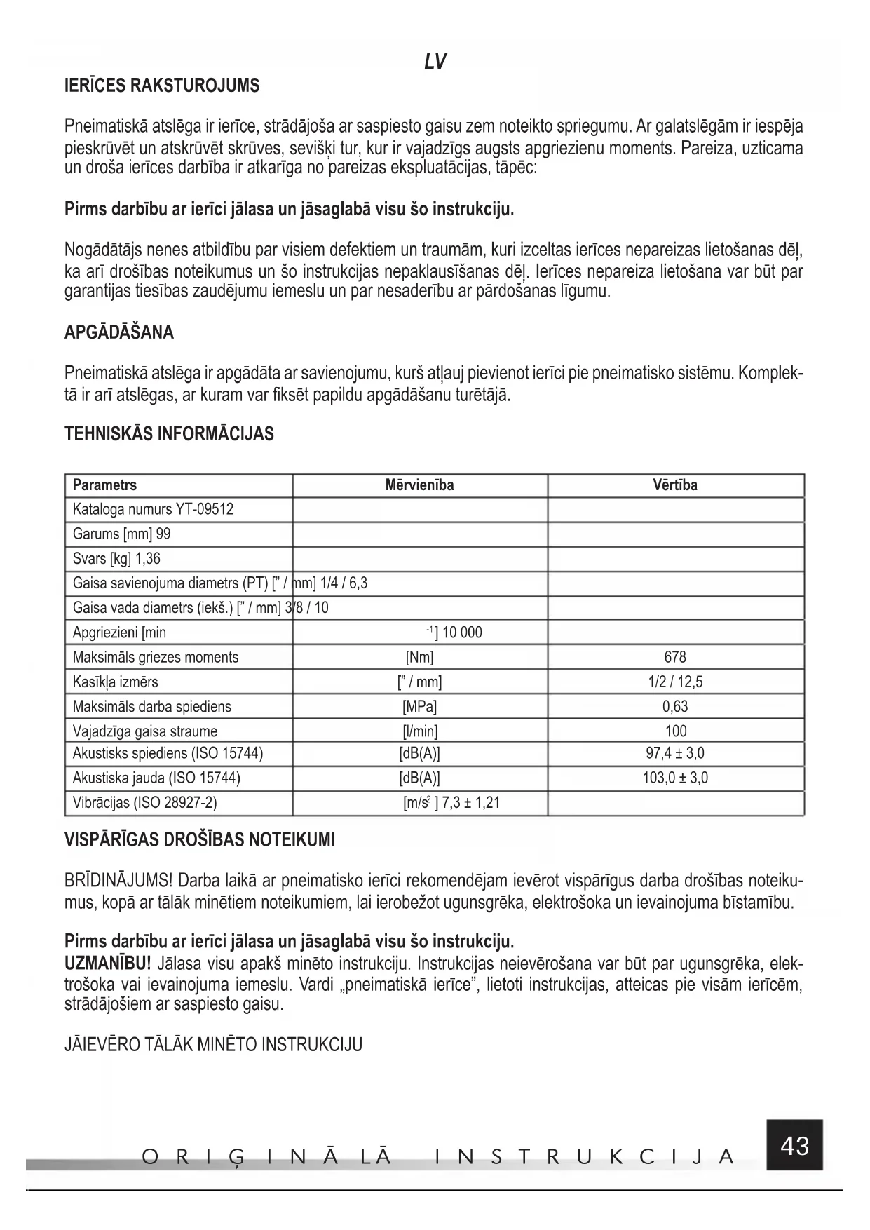 LIETOŠANAS INSTRUKCIJA YT09512 Yato