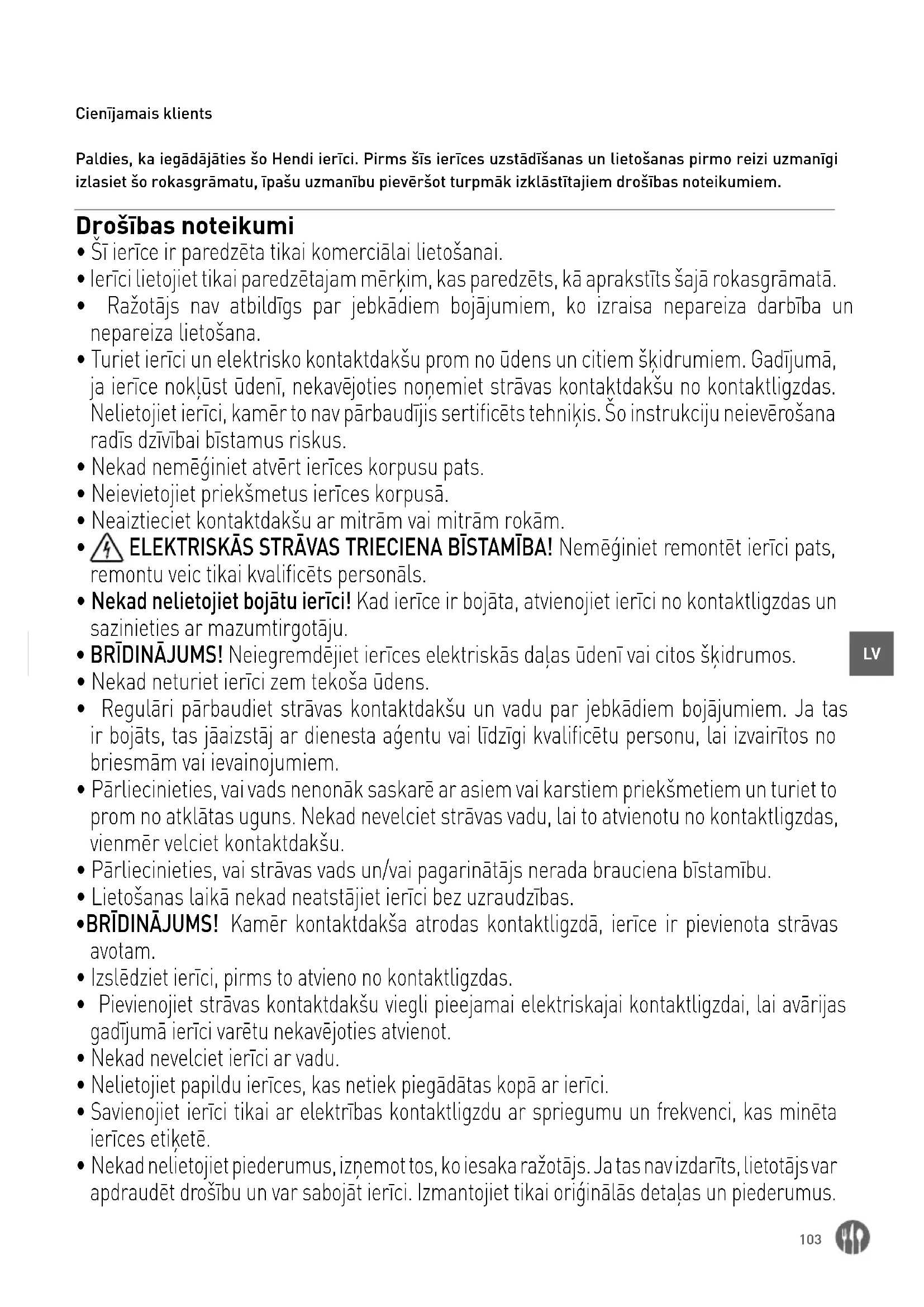 Cienījamais klients Paldies, ka iegādājāties šo Hendi ierīci. Pirms šīs ierīces uzstādīšanas un lietošanas pirmo reizi uzmanīgi izlasiet šo rokasgrāmatu, īpašu uzmanību pievēršot turpmāk izklāstītajiem drošības noteikumiem. Drošības noteikumi