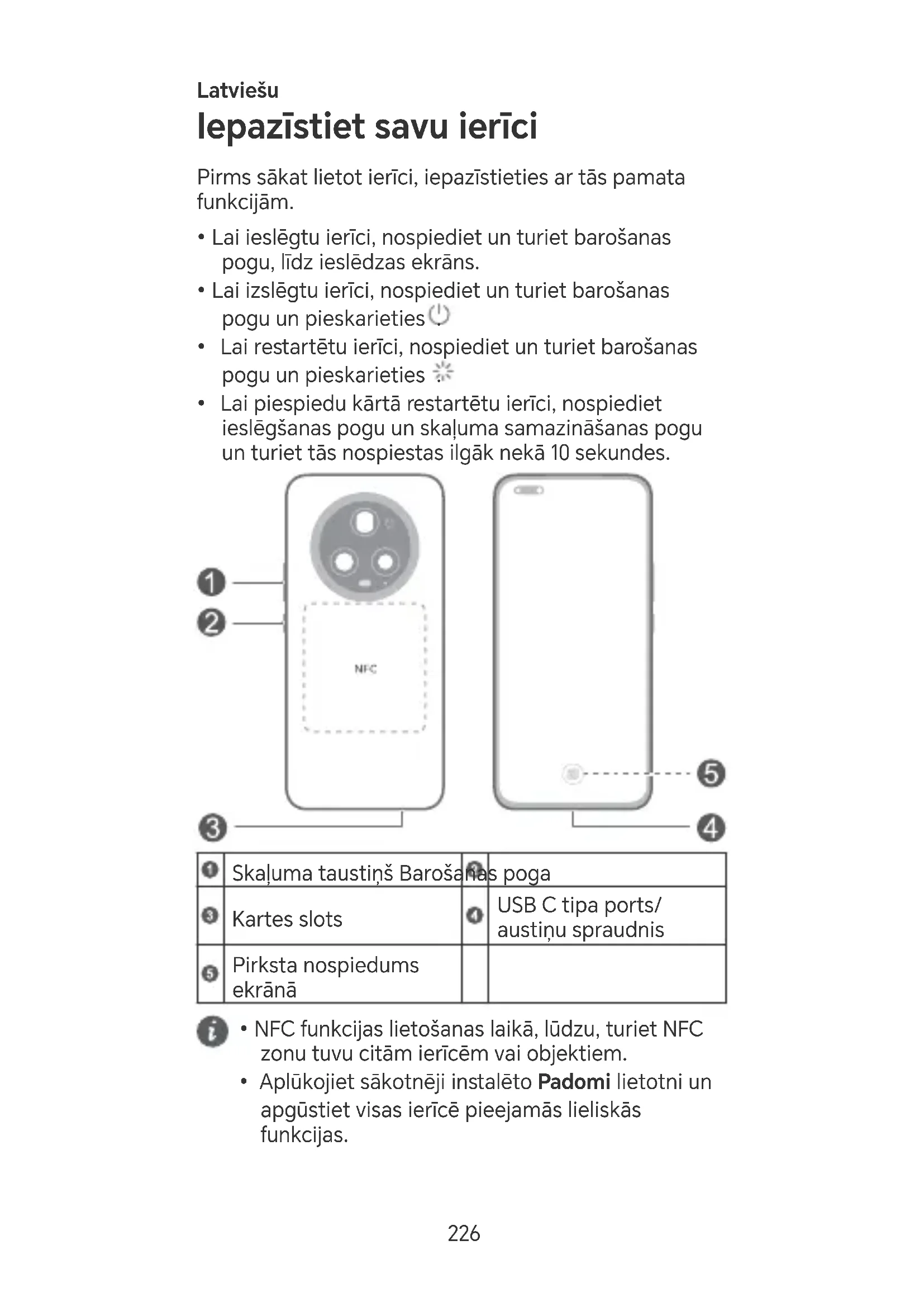 - NFC funkcijas lietošanas laikā, lūdzu, turiet NFC zonu tuvu citām ierīcēm vai objektiem.