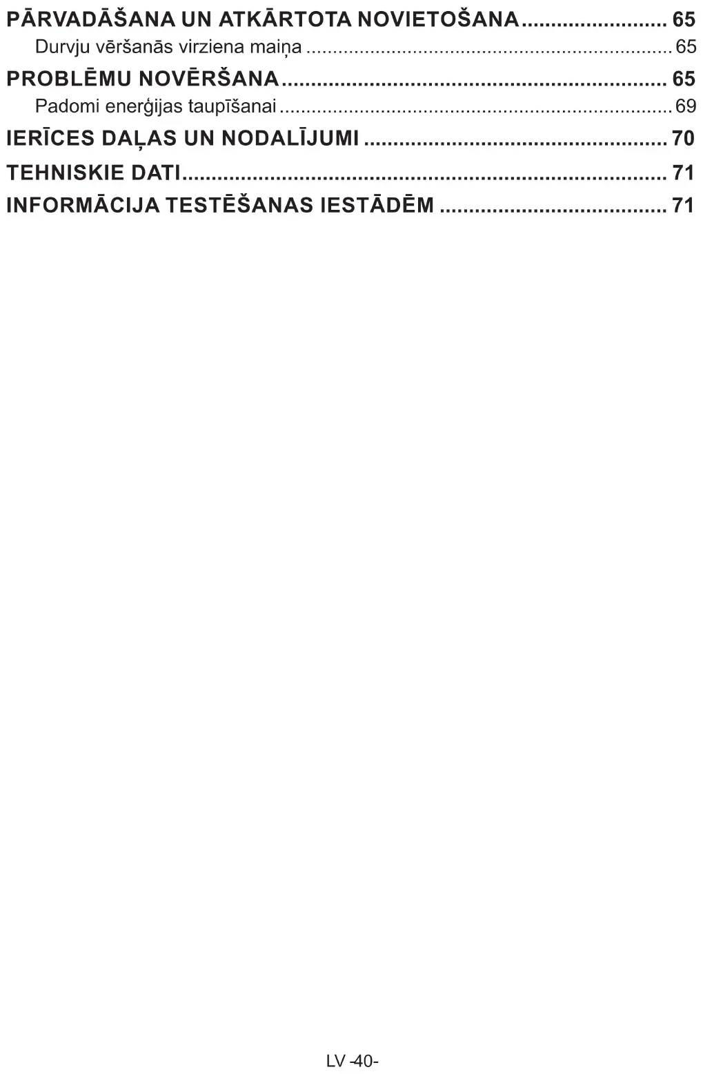 - Ja problēma pastāv pēc visu iepriekš sniegto norādījumu ievērošanas, sazinieties ar pilnvarotu apkalpesLV -69- Padomi enerģijas taupīšanai