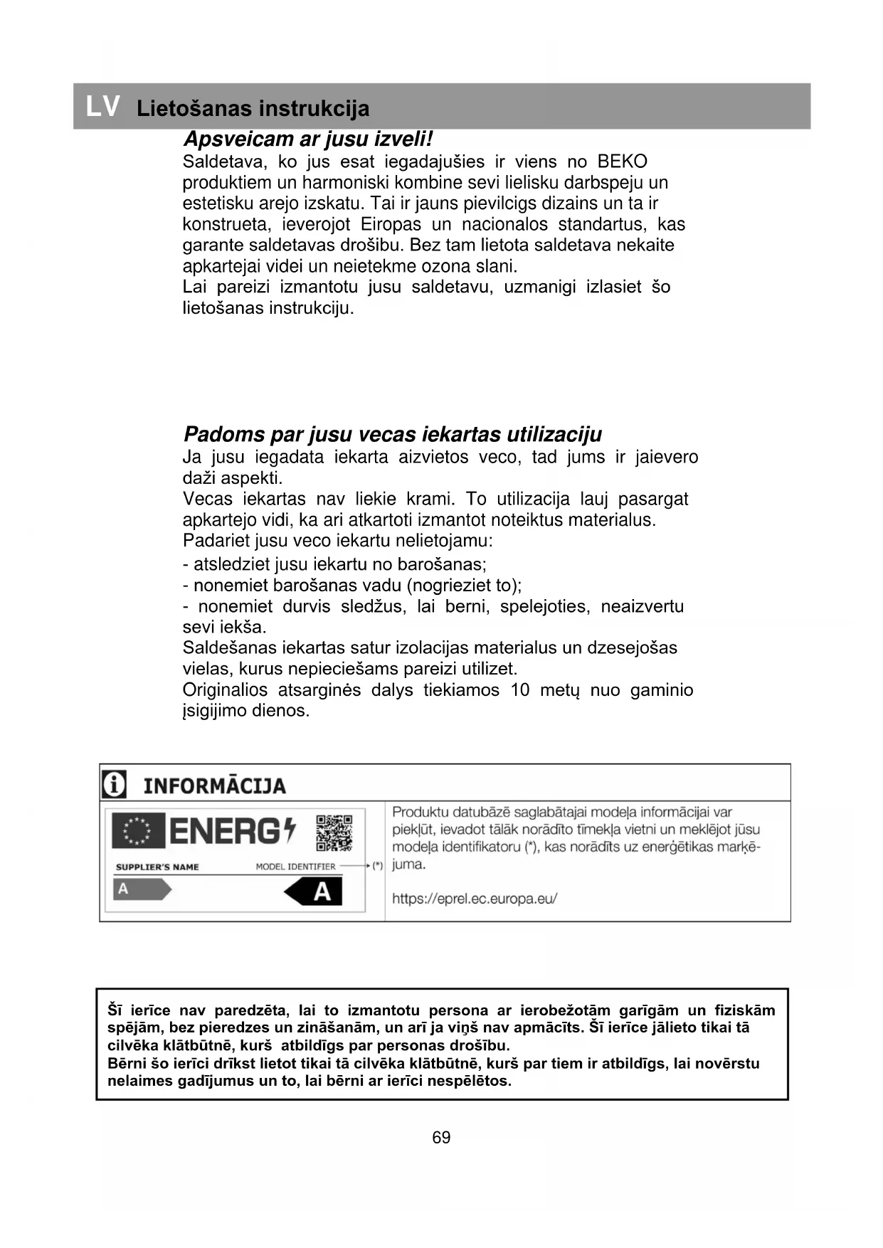 HSM40031 - Saldētava BEKO - Bezmaksas lietošanas instrukcija