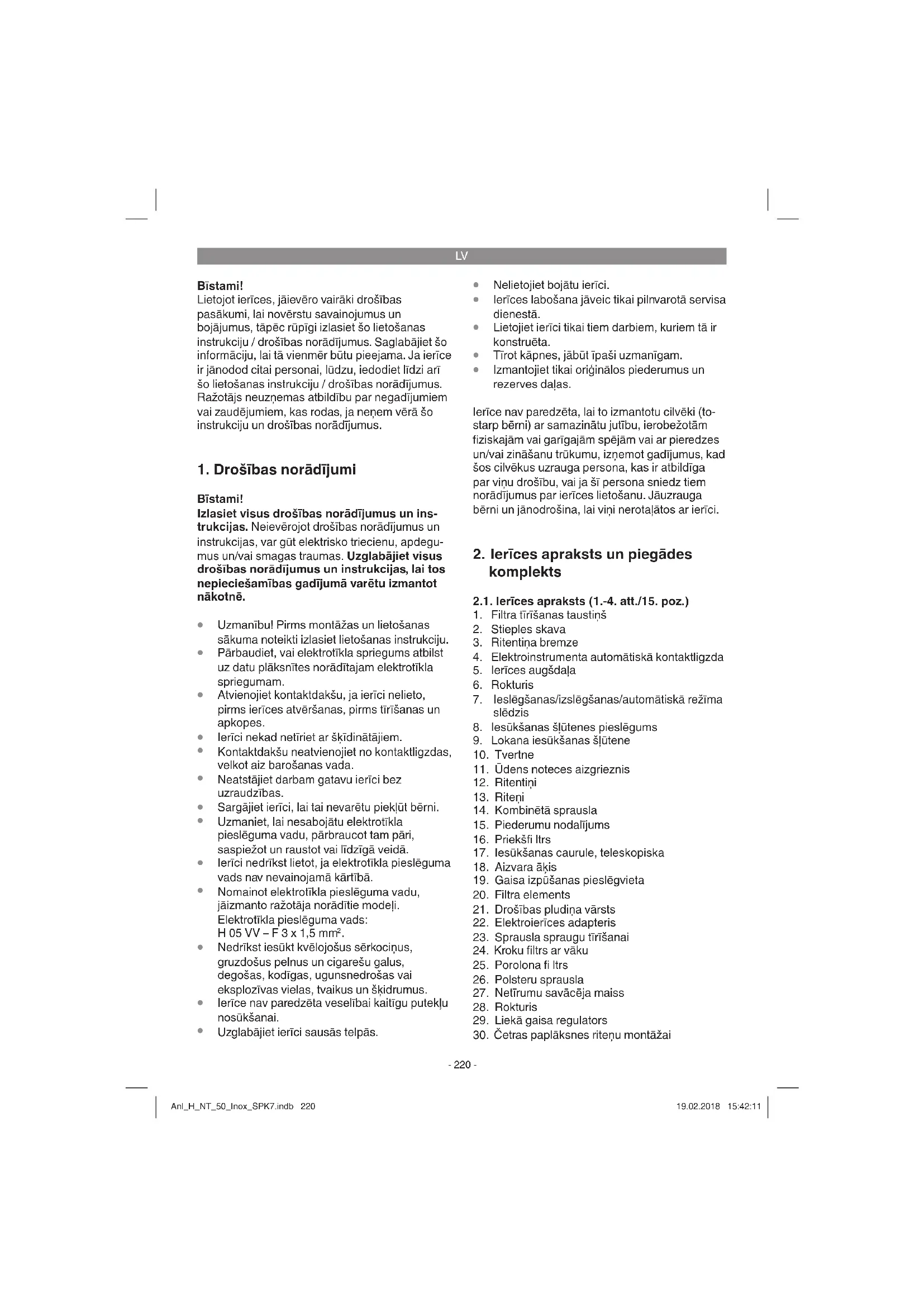 Bīstami! Ja šīs ierīces tīkla pieslēguma vads tiek sabojāts, ražotājam vai servisa dienestam, vai atbilstoši kvalifi cētai personai tas ir jānomaina, lai izvairītos no iespējamā apdraudējuma. Anl_H_NT_50_Inox_SPK7.indb 223Anl_H_NT_50_Inox_SPK7.indb 223 19.02.2018 15:42:1119.02.2018 15:42:11LV