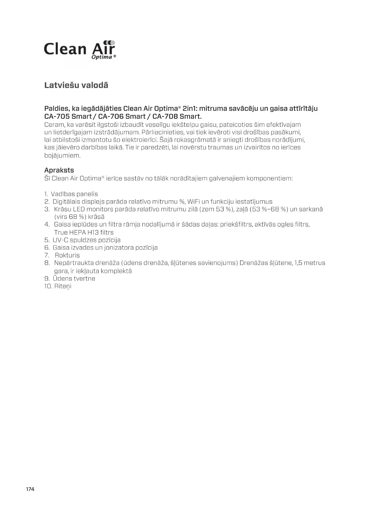 LIETOŠANAS INSTRUKCIJA CA706 Smart Clean Air Optima
