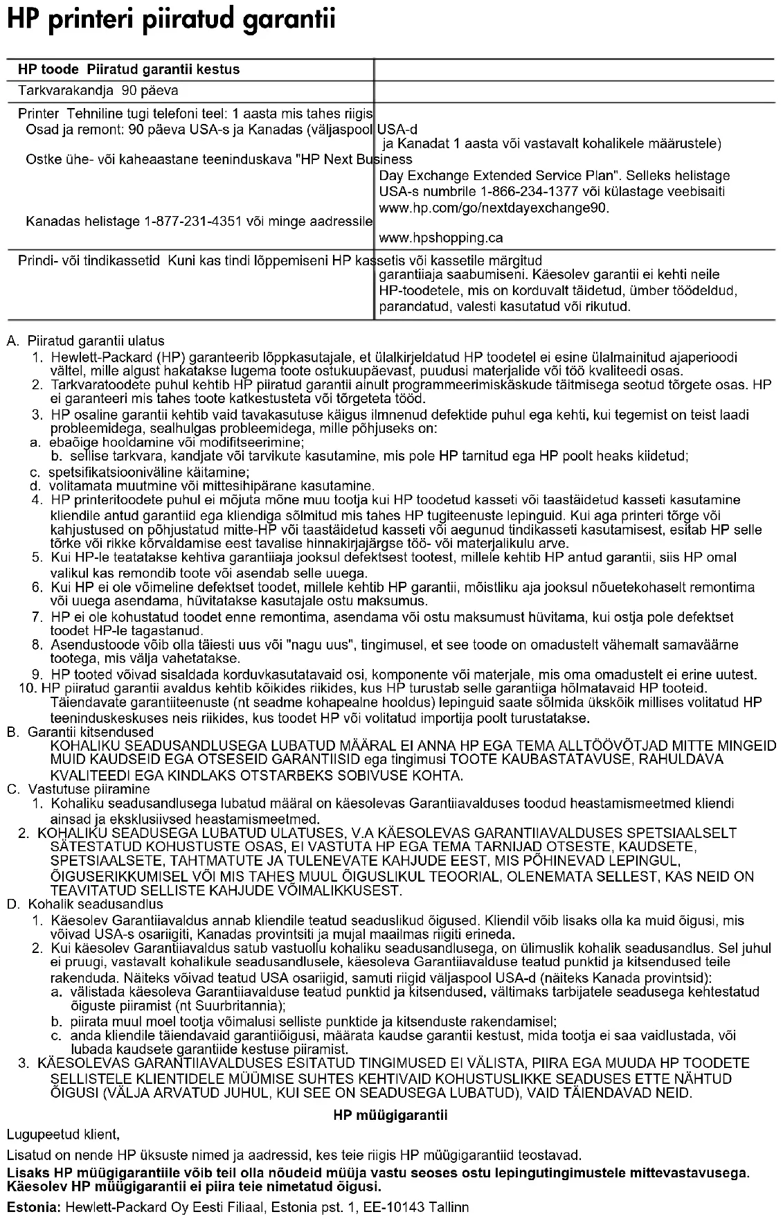 Līgumus par papildu garantijas pakalpojumiem, piemēram, servisu, izbraucot pie klienta, piedāvā visi autorizētie HP servisa centri tajās valstīs, kur šo produktu izplata HP vai autorizēts importētājs. B. Garantijas ierobežojumi CIKTĀL TO ATĻAUJ VIETĒJĀ LIKUMDOŠANA, NE HP, NE TĀS TREŠĀS PUSES PIEGĀDĀTĀJI NEGARANTĒ UN NEPIEĻAUJ NEKĀDA VEIDA NE TIEŠI, NE NETIEŠI NORĀDĪTAS GARANTIJAS VAI NOTEIKUMUS PAR PIEMĒROTĪBU PĀRDOŠANAI, APMIERINOŠU KVALITĀTI UN PIEMĒROTĪBU NOTEIKTAM NOLŪKAM, KĀ ARĪ ŠĀDUS APSTĀKĻUS. C. Atbildības ierobežojumi